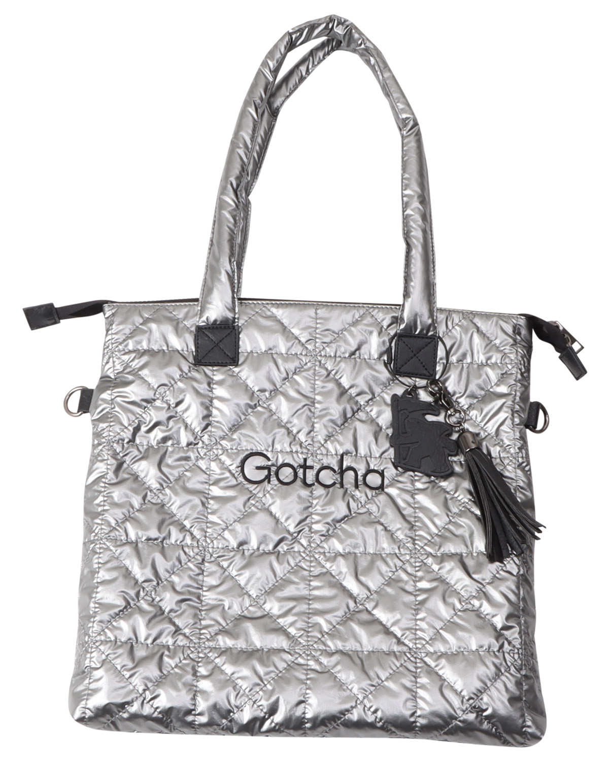 ウィメンズ チャーム付きシルバー トートバッグ