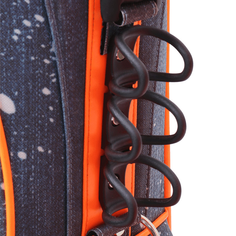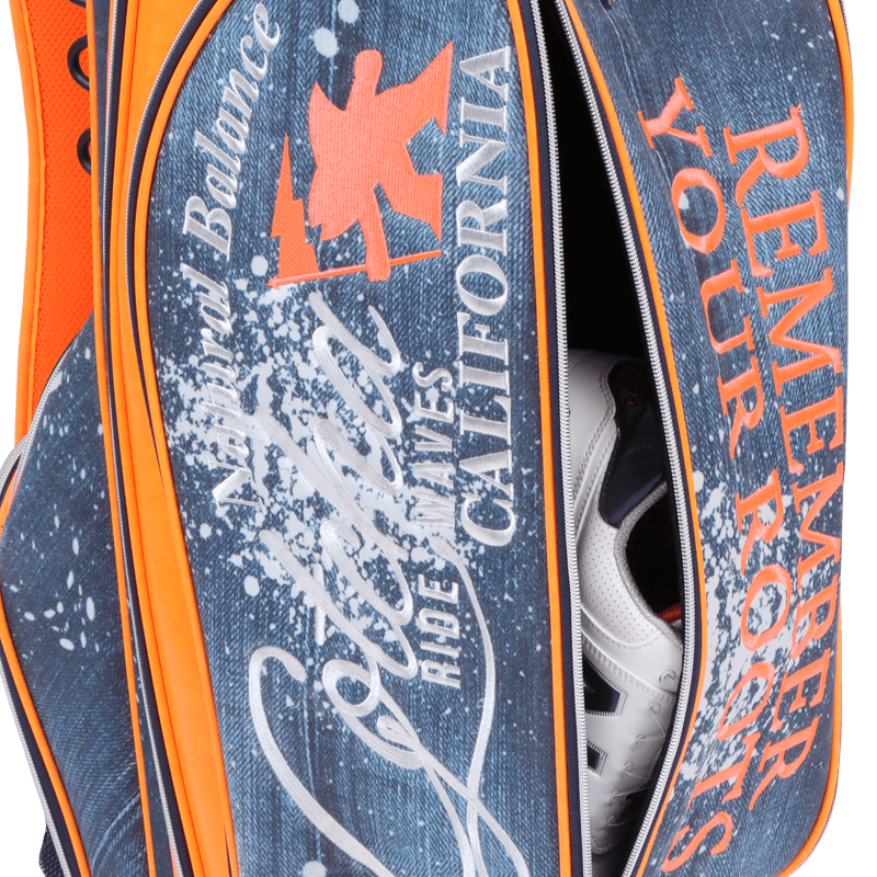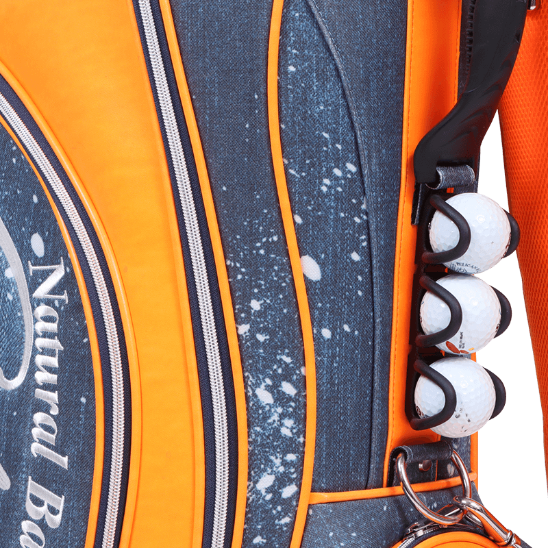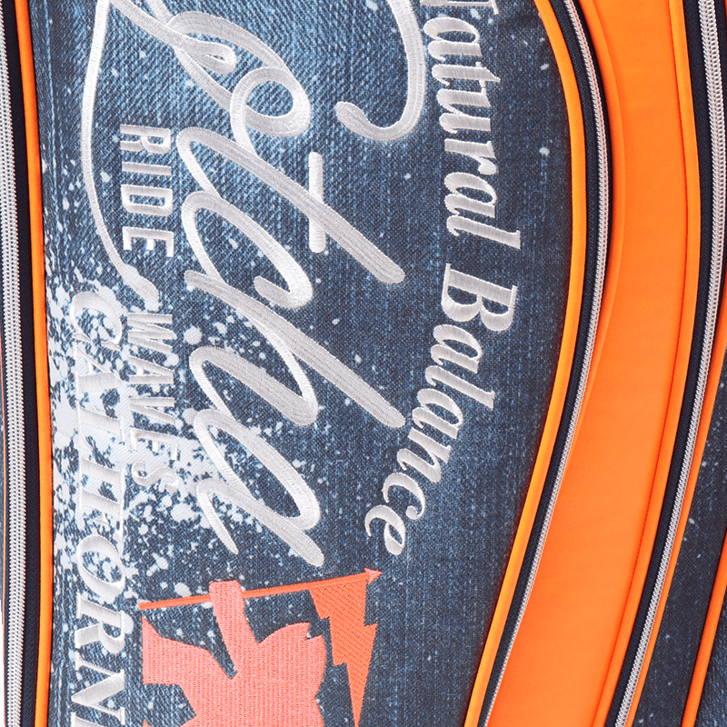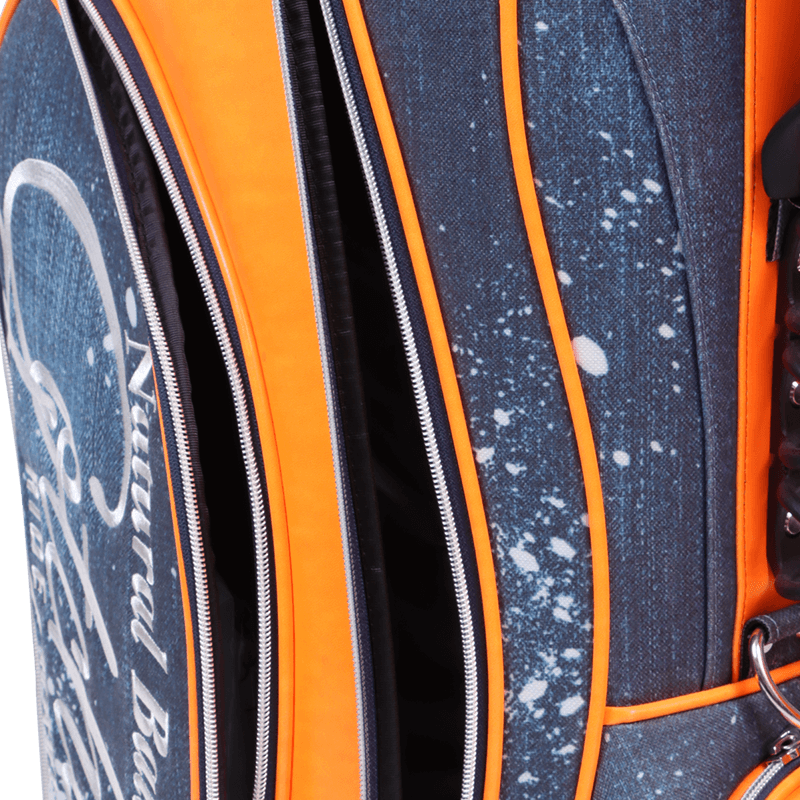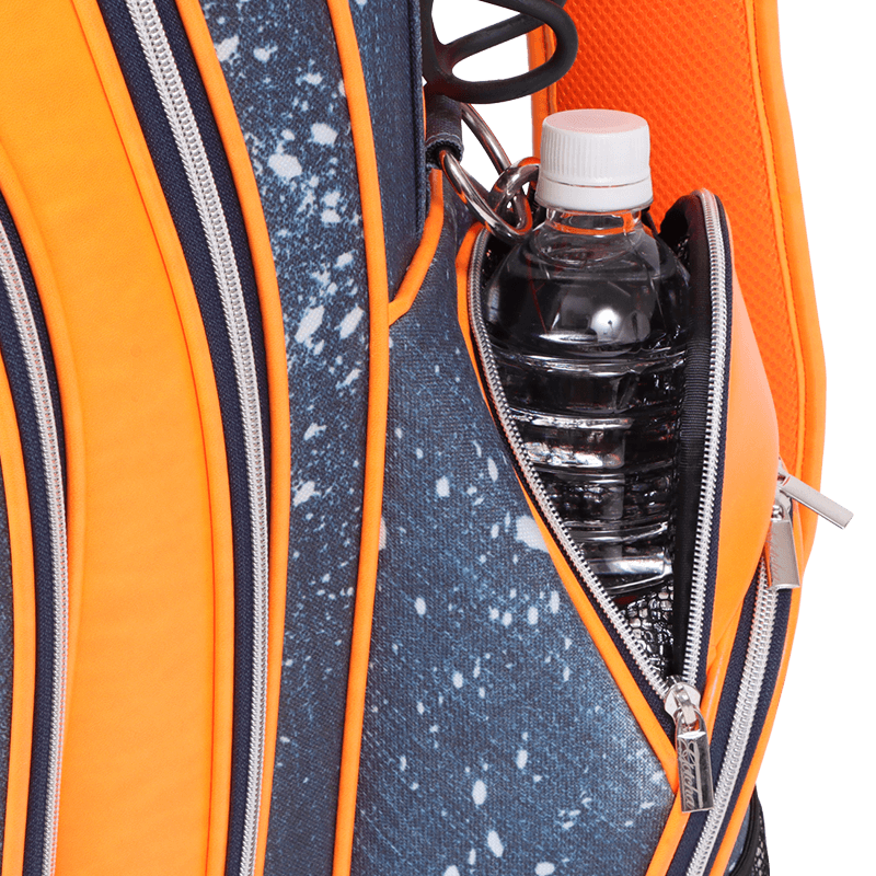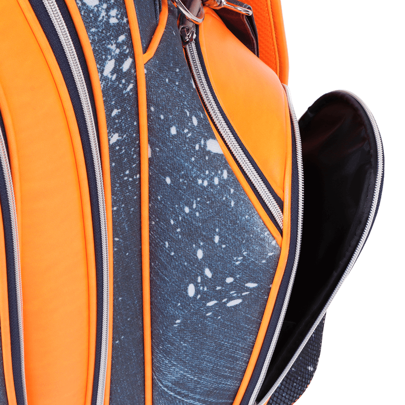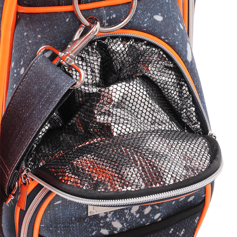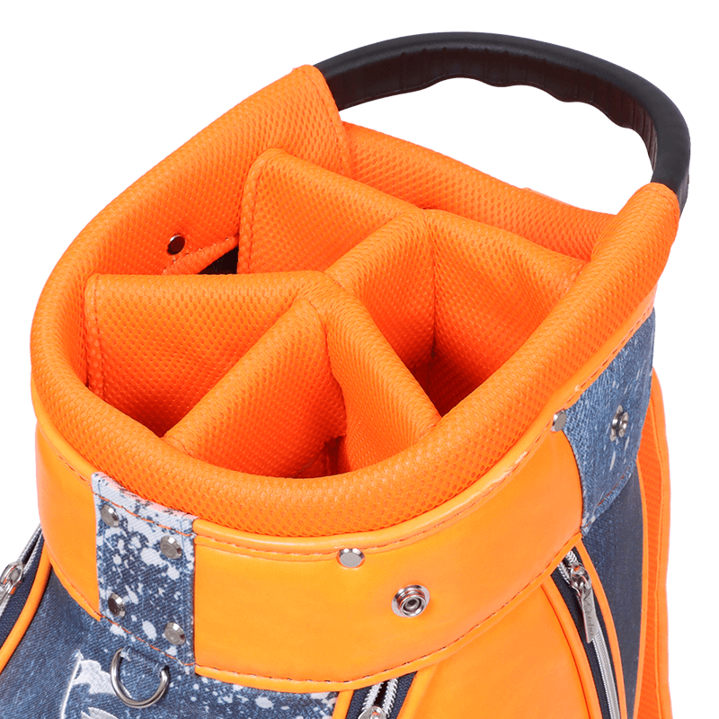 カバーを外した際に顔を出すネオンオレンジのメッシュを使用した口枠は、存在感がありつつもクラブを引き立たせてくれます。また、5分割に仕切っており、バランスのとれたクラブ収納を可能にしています。