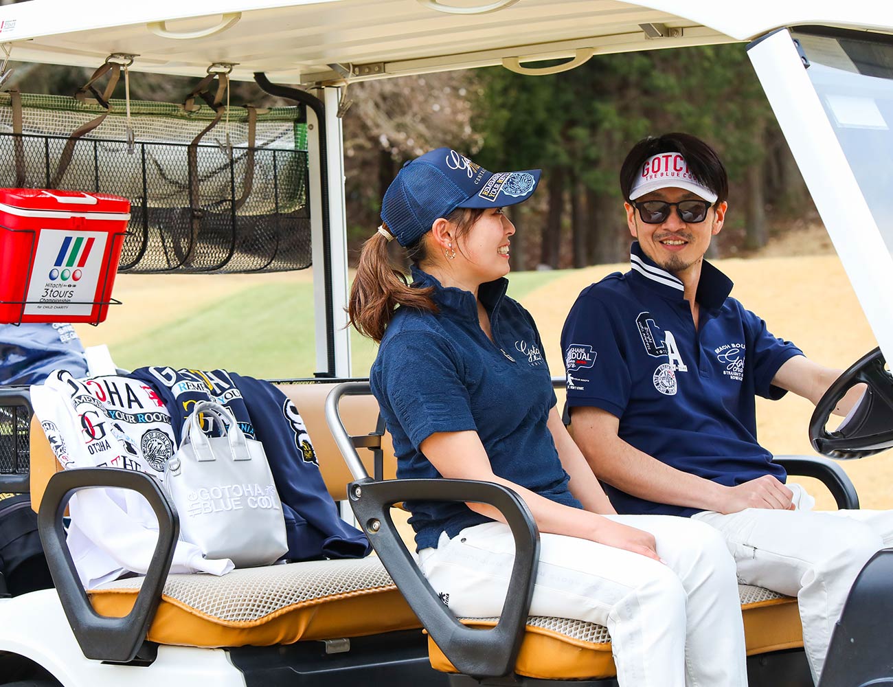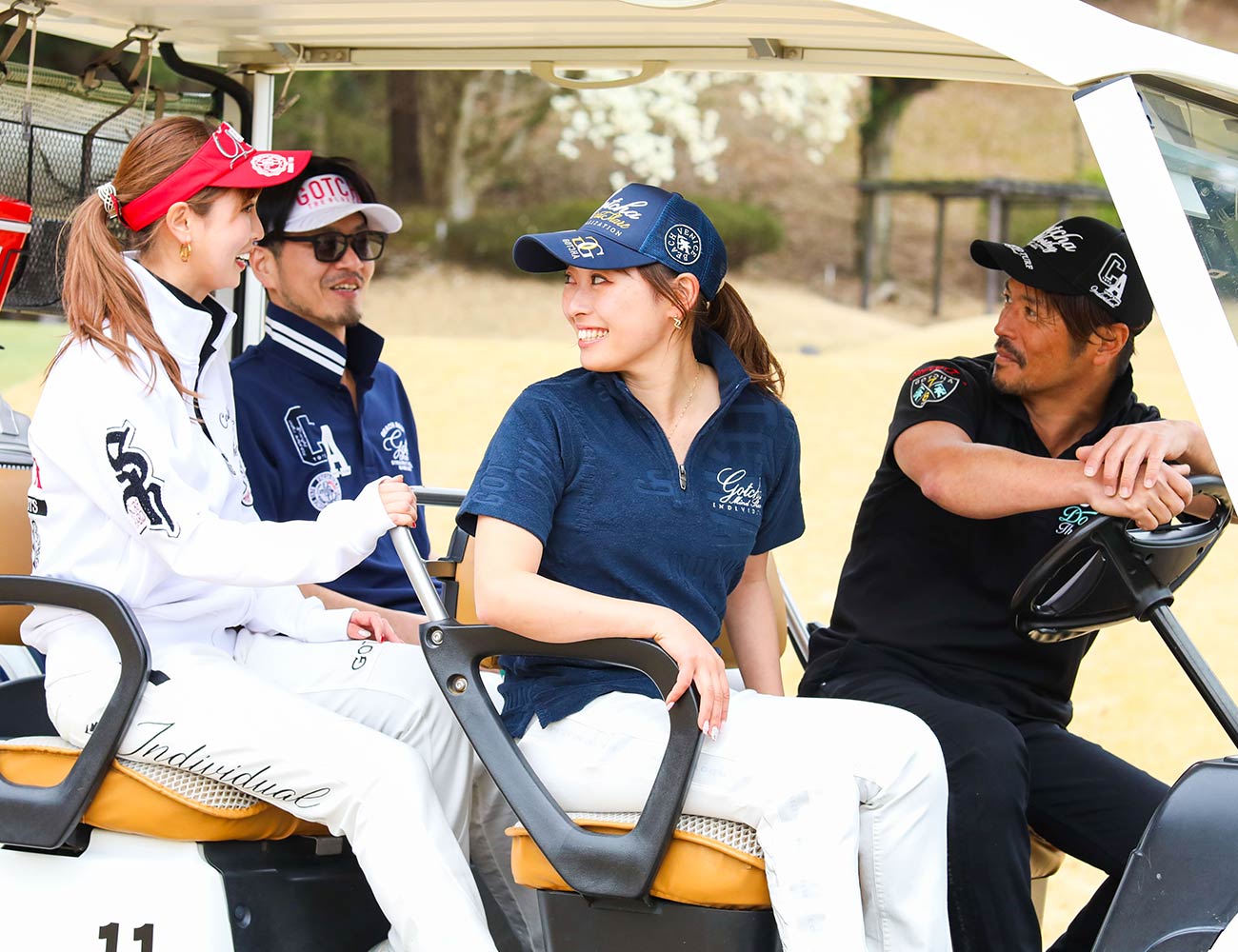 GOTCHA GOLFのウェアは、家族や仲間と一緒に着ると、一体感も生まれ、プレーする側も見ている側もHAPPYな気持ちに♪普段着でお揃いは恥ずかしい方もゴルフ場ではありかも!?