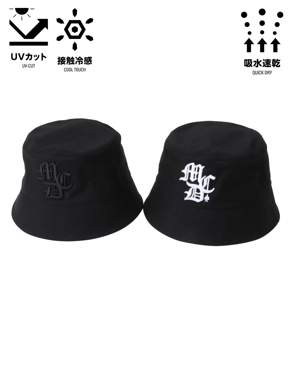 UVカット ドライ クール 3Dロゴ 刺繍 バケットハット