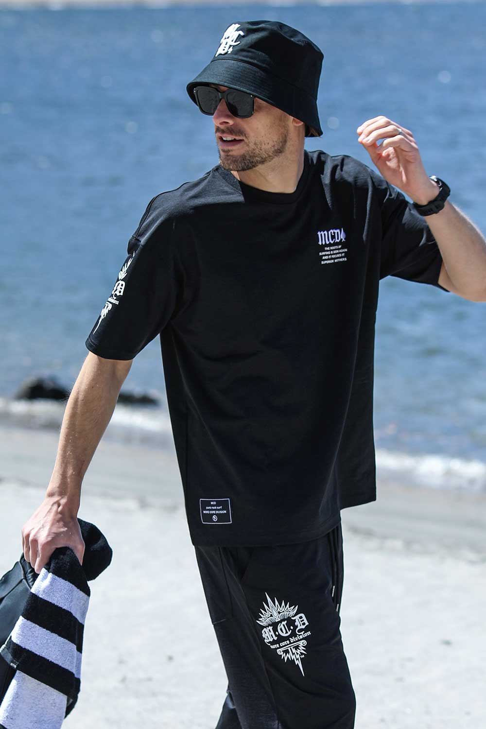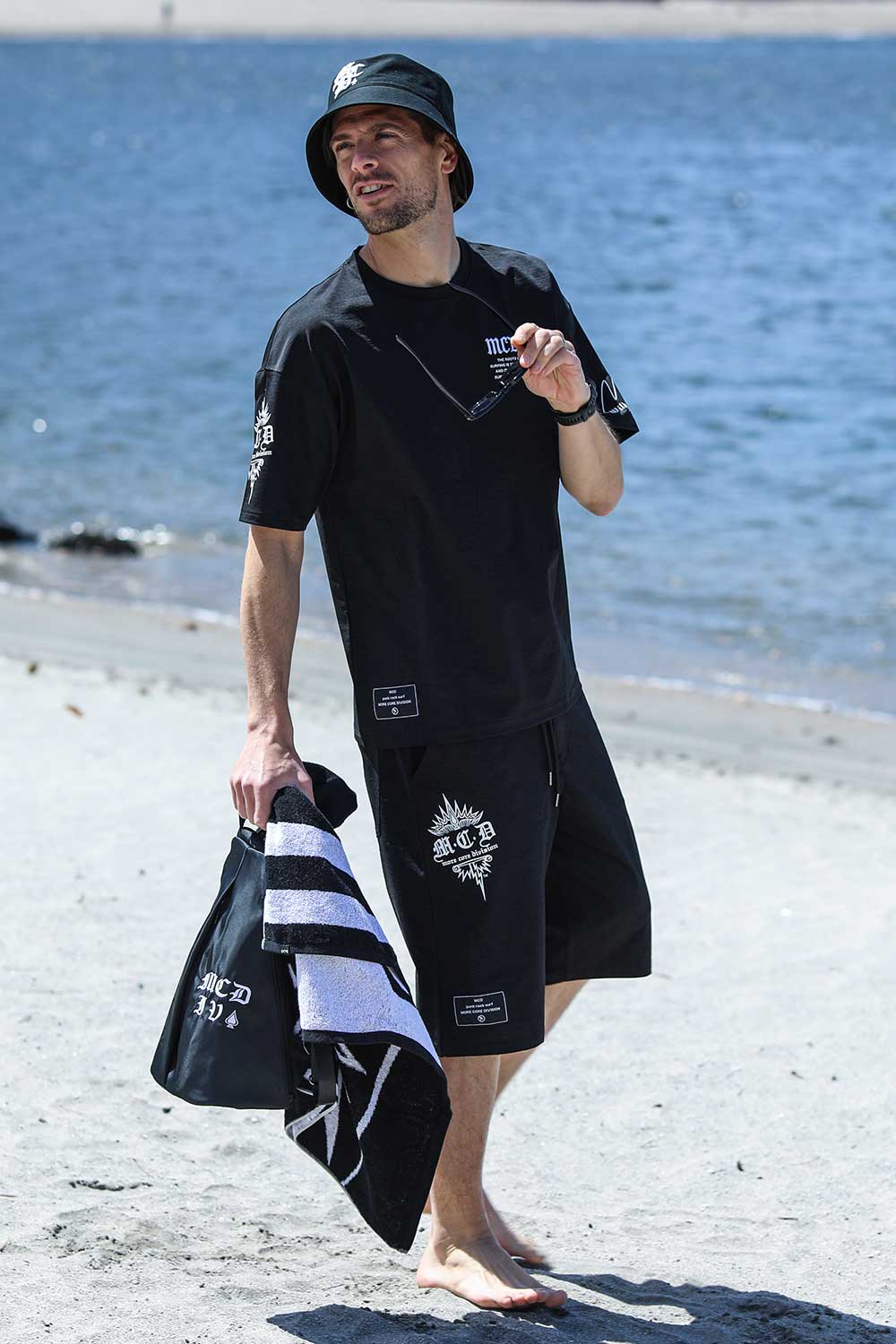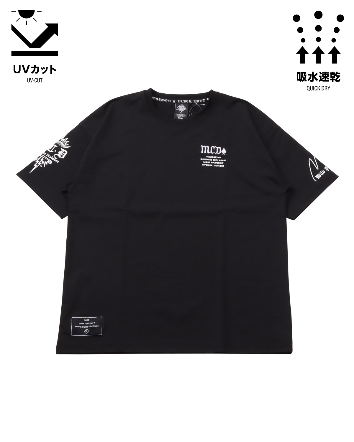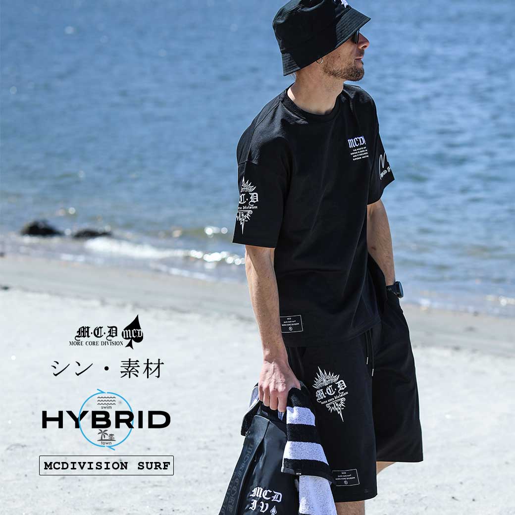MCD="よりハードコアなサーフブランド"。 そのサーフブランドとしての根源を追求し、今までにない新たな水陸両用(ハイブリッド)素材を今年誕生させたMCD。 DRY&UVcutはそのままに、生地に厚みと高級感を兼ね備えた。 これにより、テロっとしたカラダのラインを拾う生地ではなくなり、カラダのラインを拾わなくなったので、"より"誰でも着やすく、"より"水辺だけでなくタウンユースとしても使いやすくなった。 このシン・素材ハイブリッドアイテムで、年々長引く夏を快適に、カッコよくキメていこう。