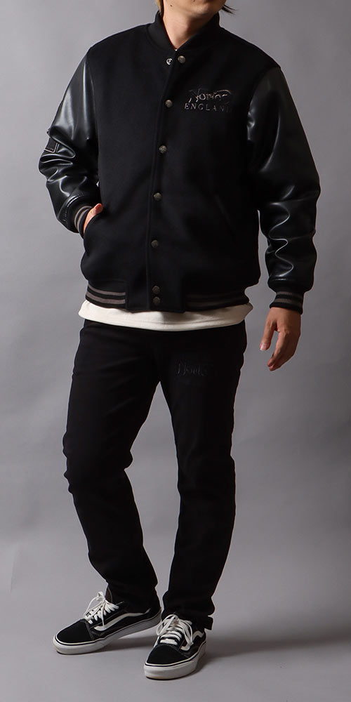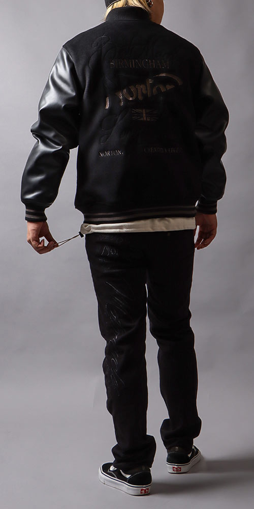 クラシックなワッペンを施したラグジュアリーな加工をのせた男らしいワッペンデザインです。