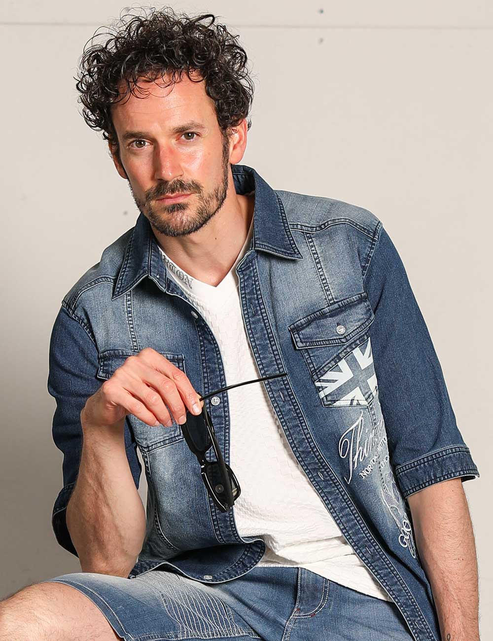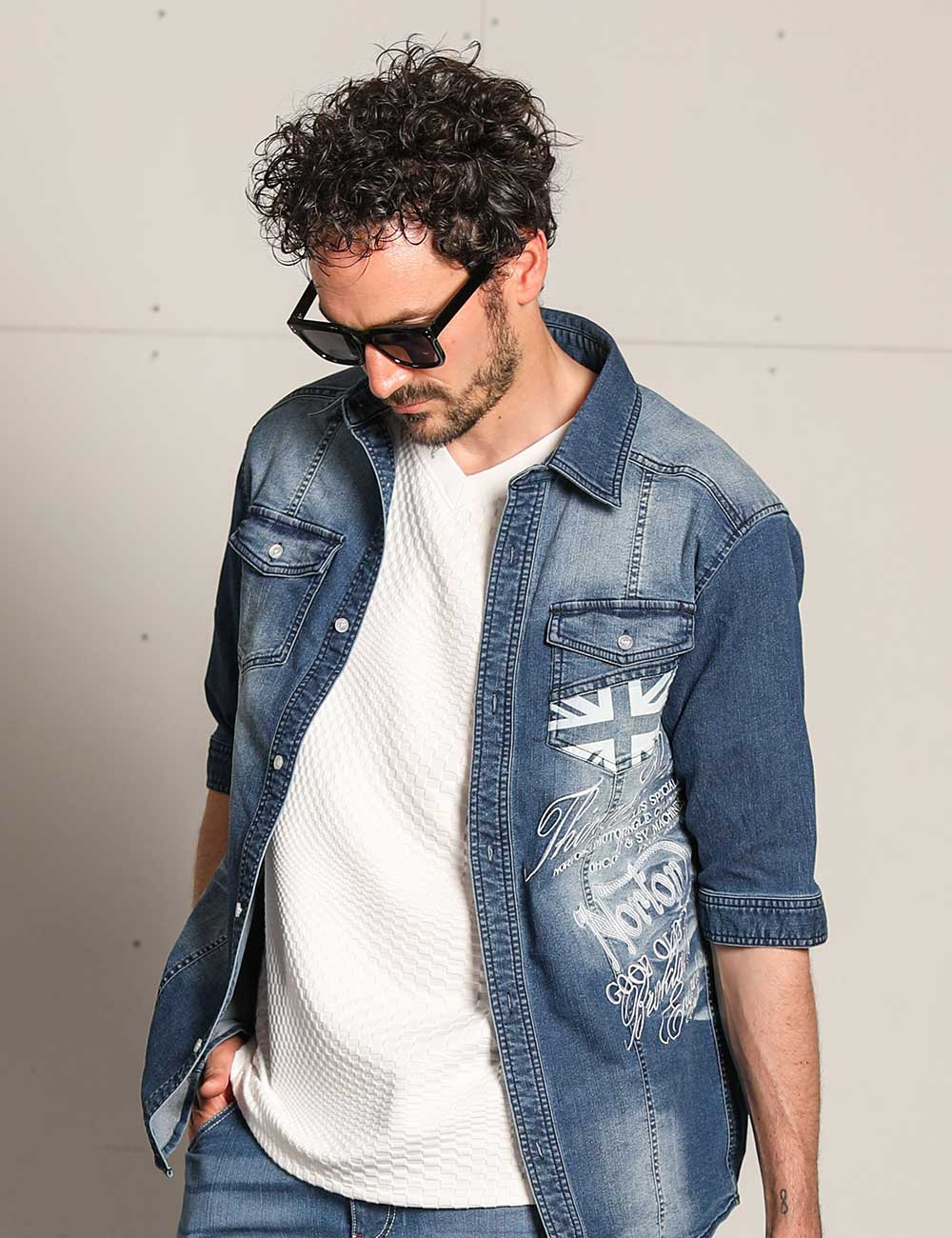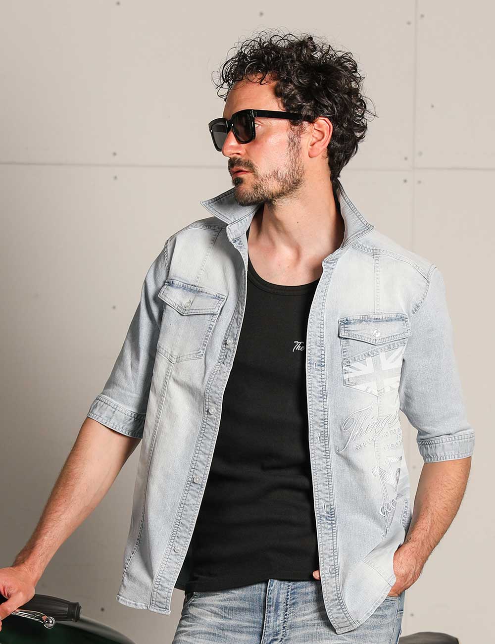 ストレッチ MAX 5分袖 デニムシャツ (242N1501)