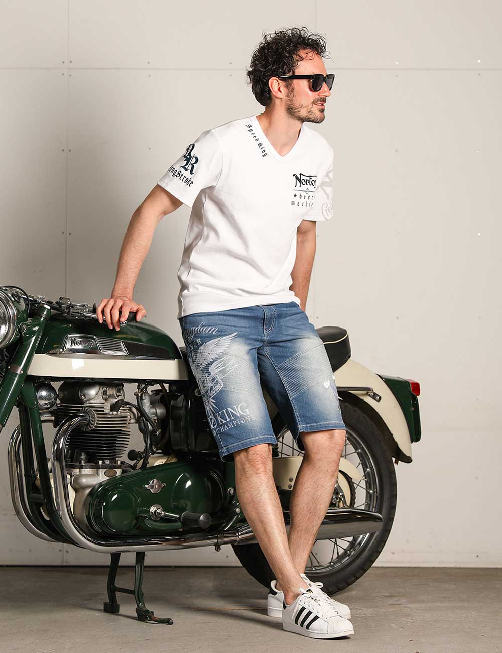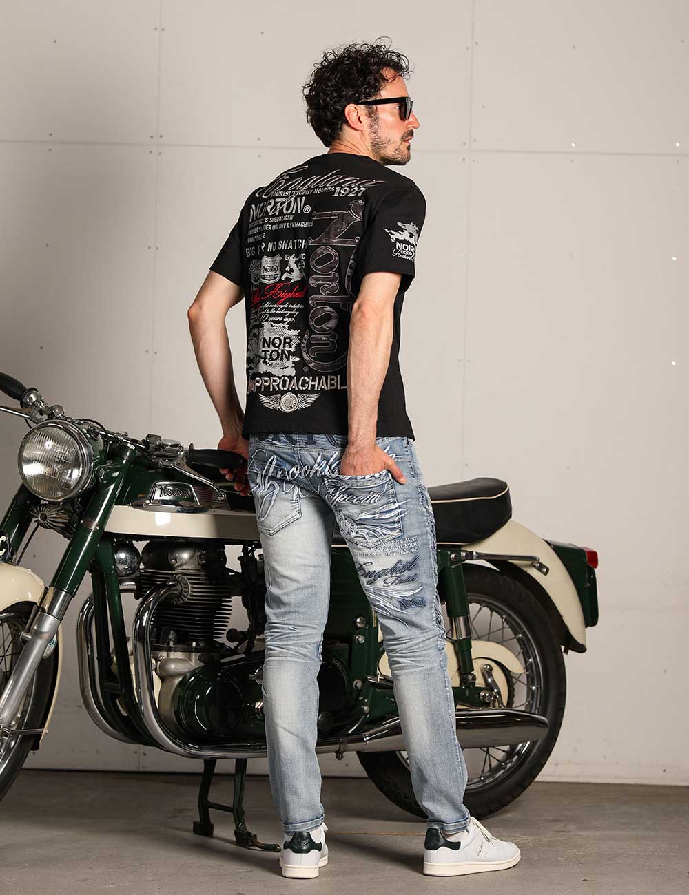 ストレッチ MAX 変形 ライダース デニムパンツ (242N1802)