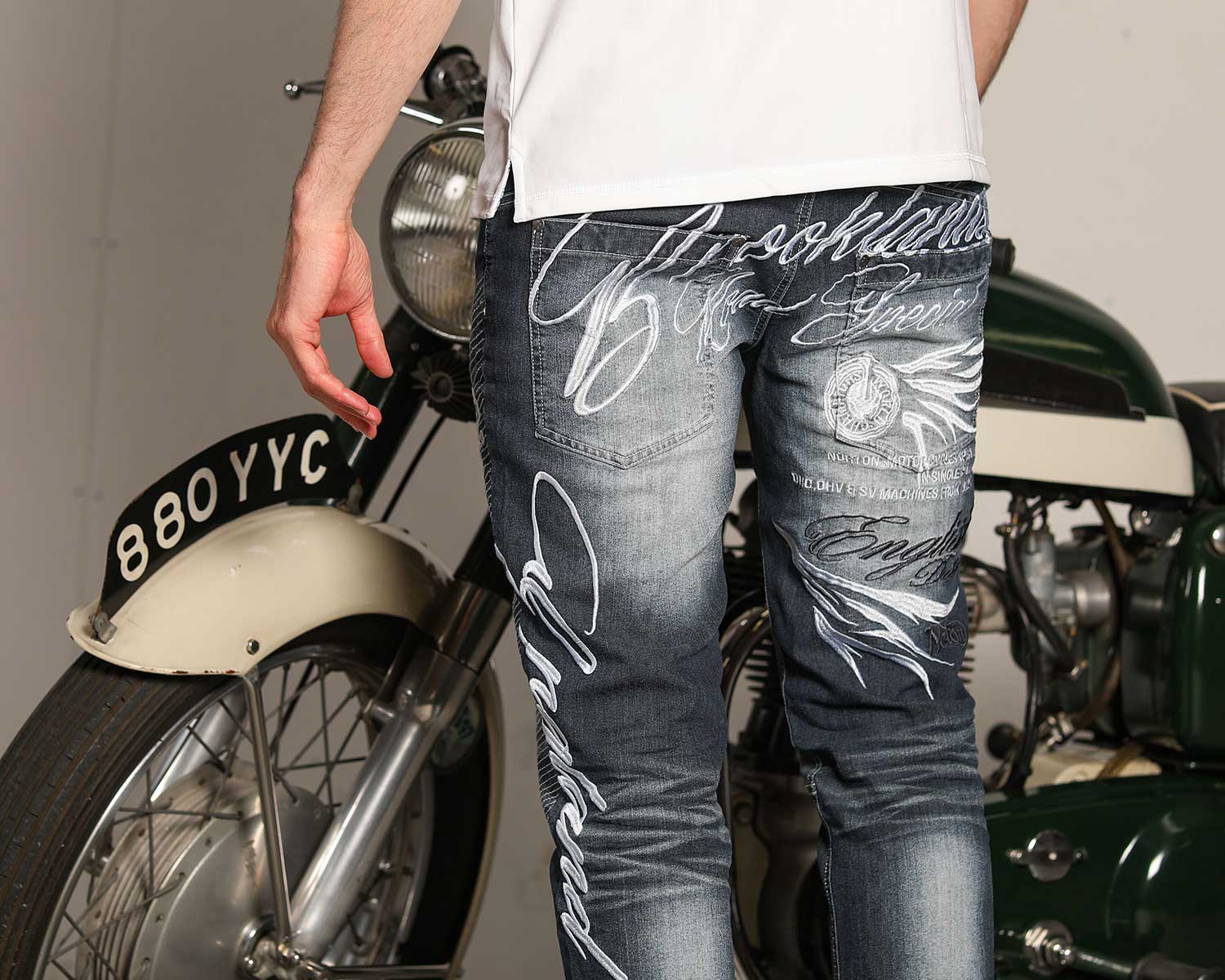 ストレッチ MAX 変形 ライダース デニムパンツ