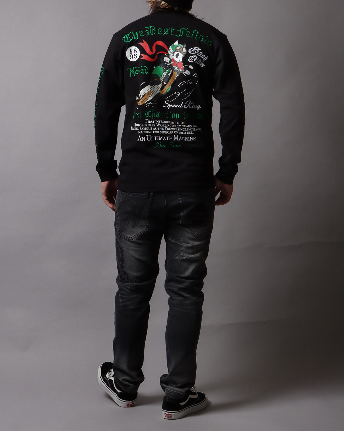 ドッグライダー"ジェームス"とロゴをバックに施した存在感抜群な1枚。