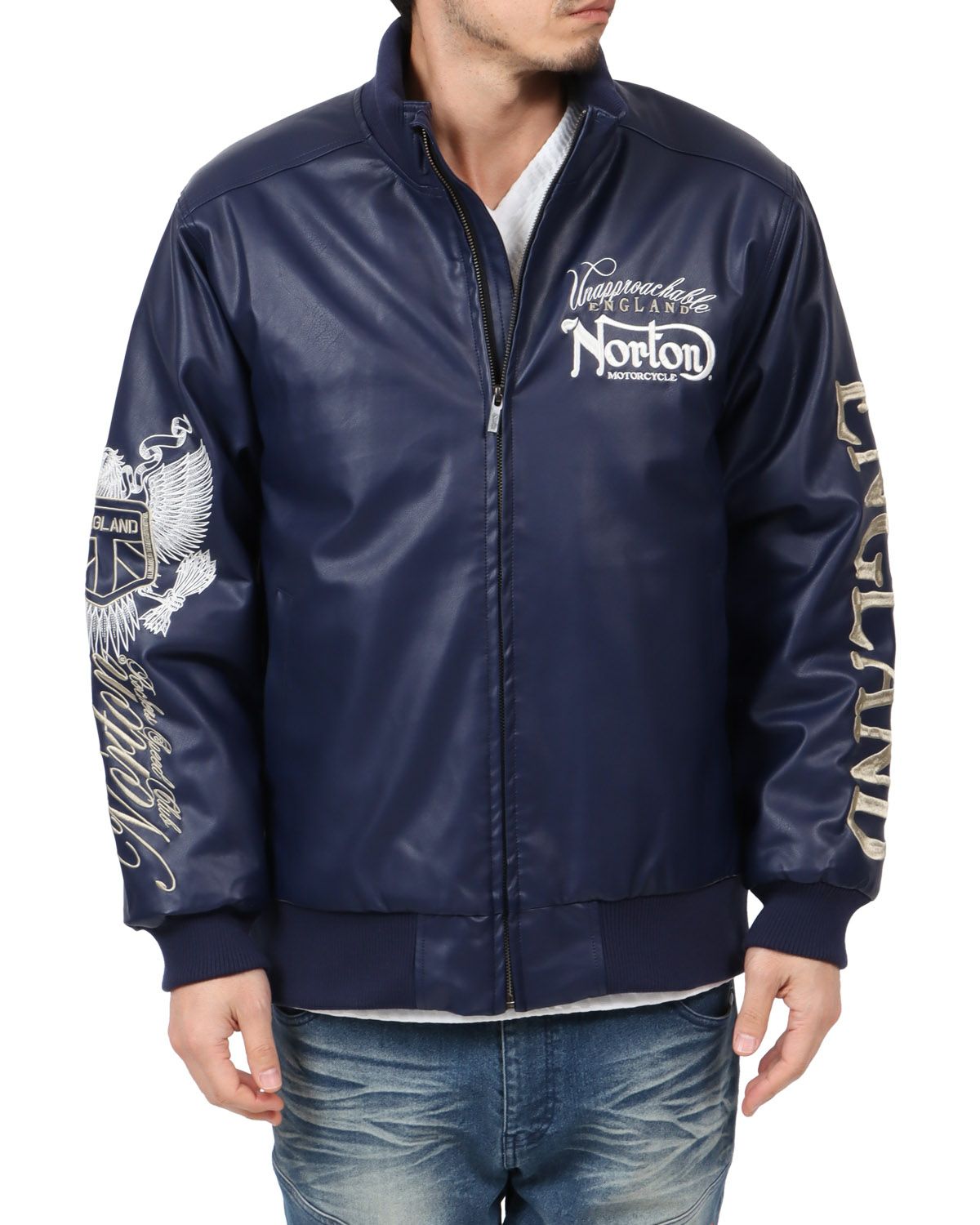 [Norton] MAX デザイン 衿スタンドリブ PU 中綿 ジャケット