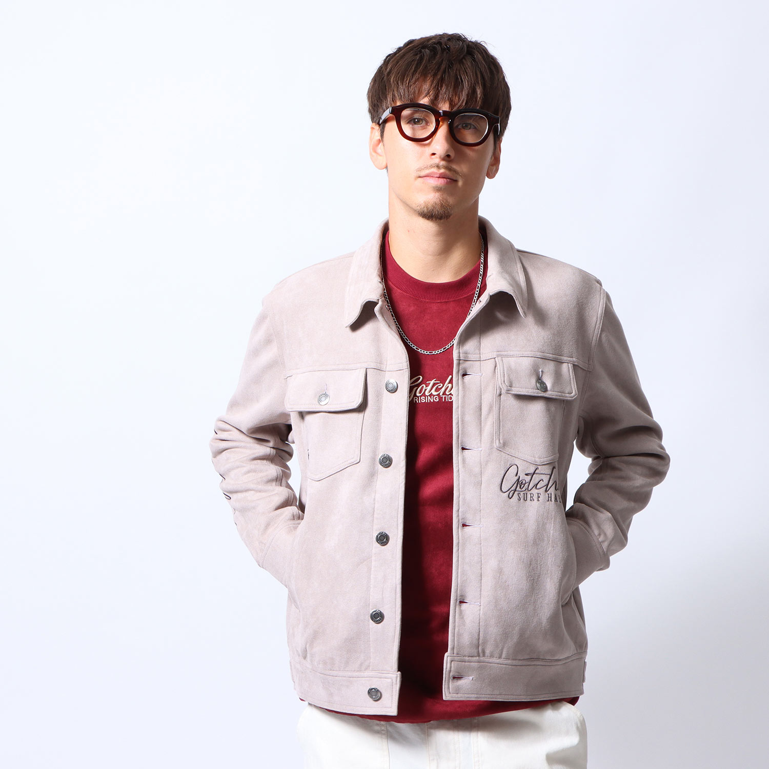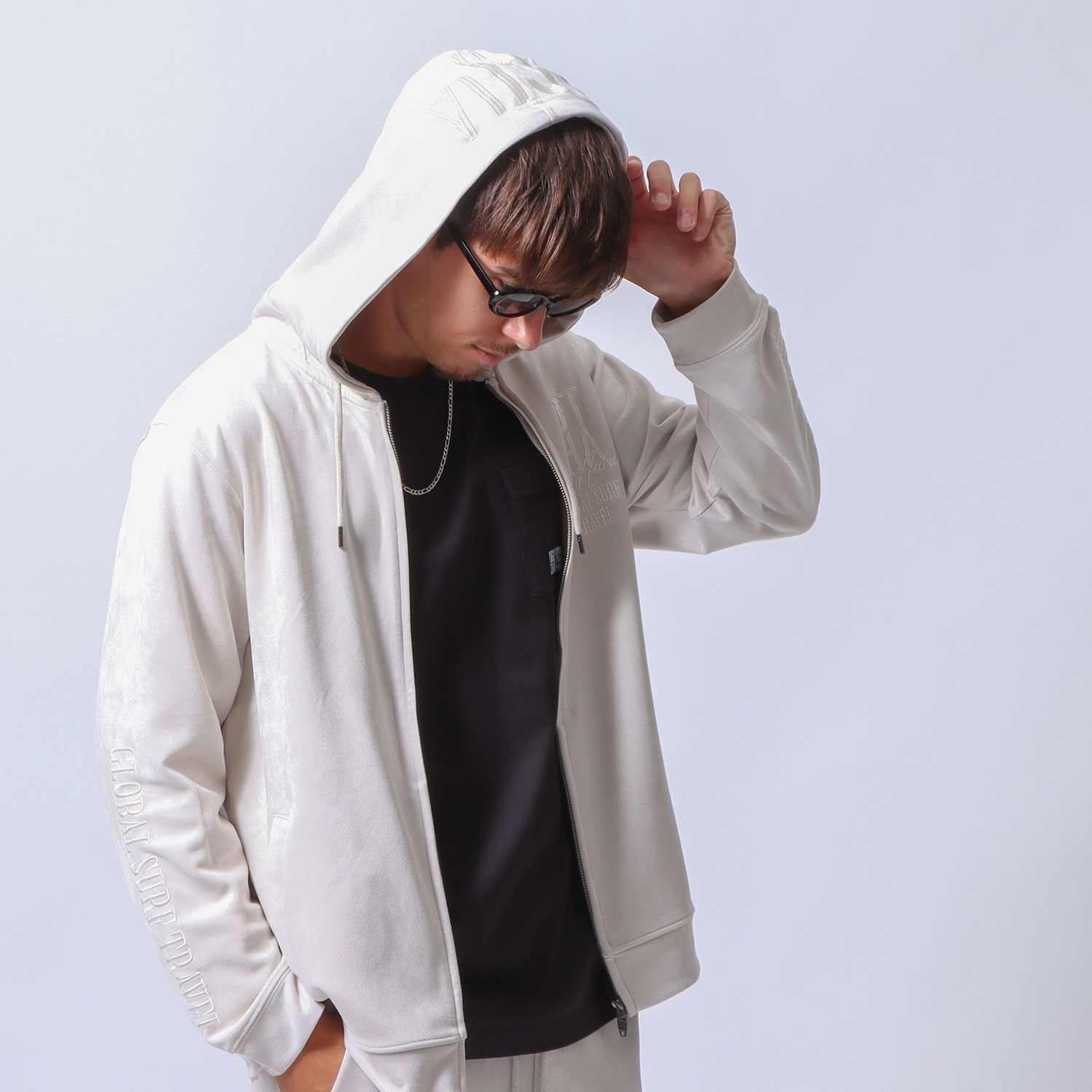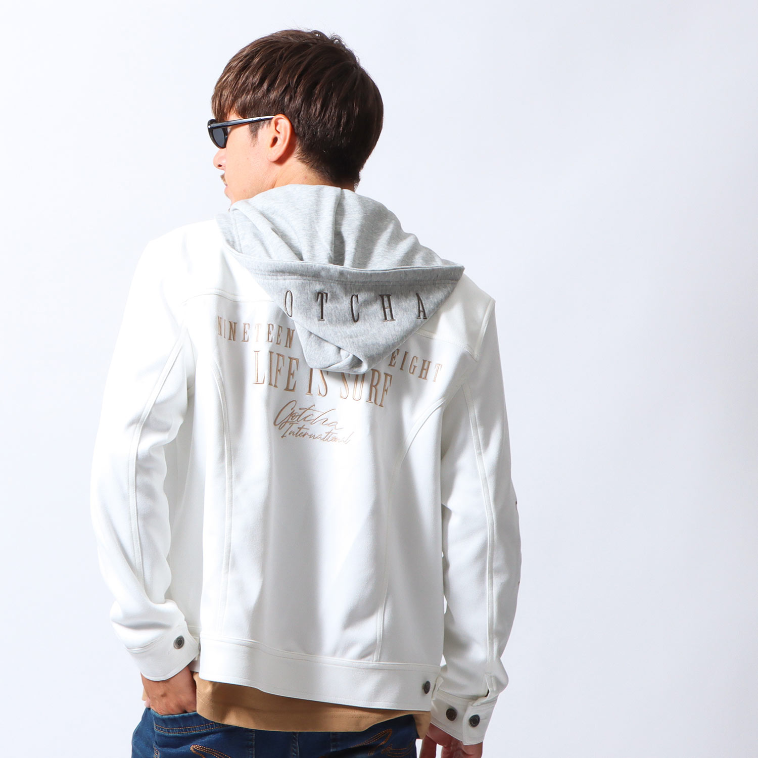 ストレッチ フェイクスウェード フード脱着 ジャケット