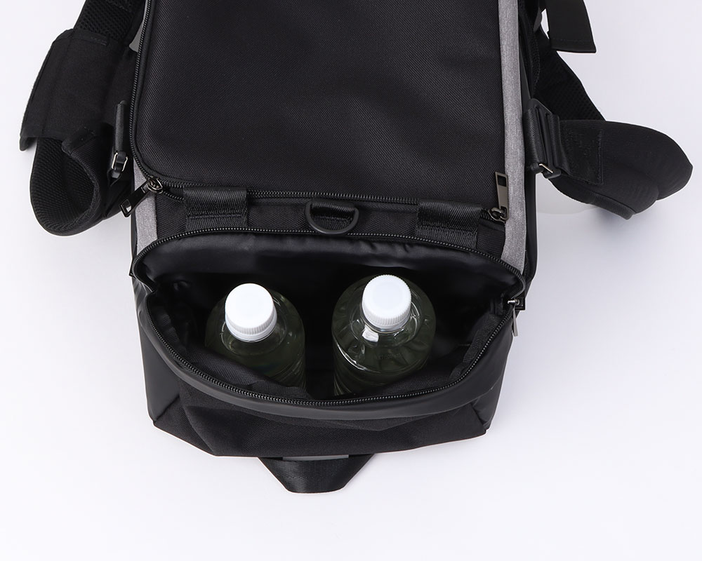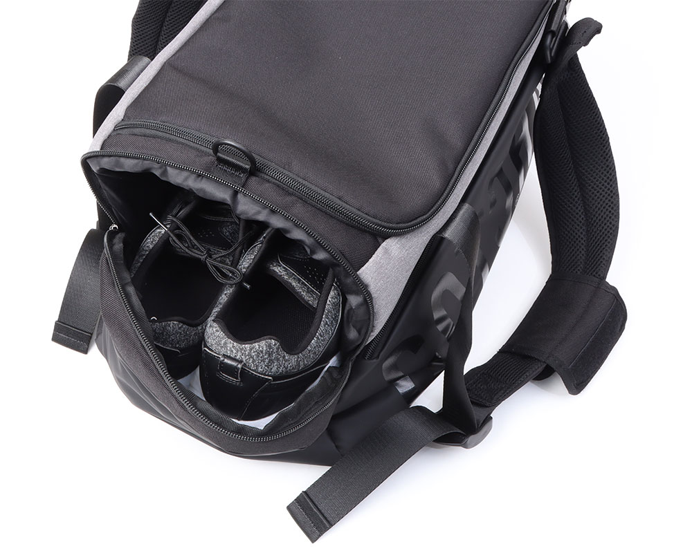 さらに、シューズ専用ポケットをサイドに配置し、他の荷物と分けて清潔に収納可能。
