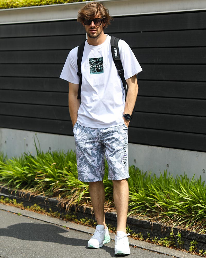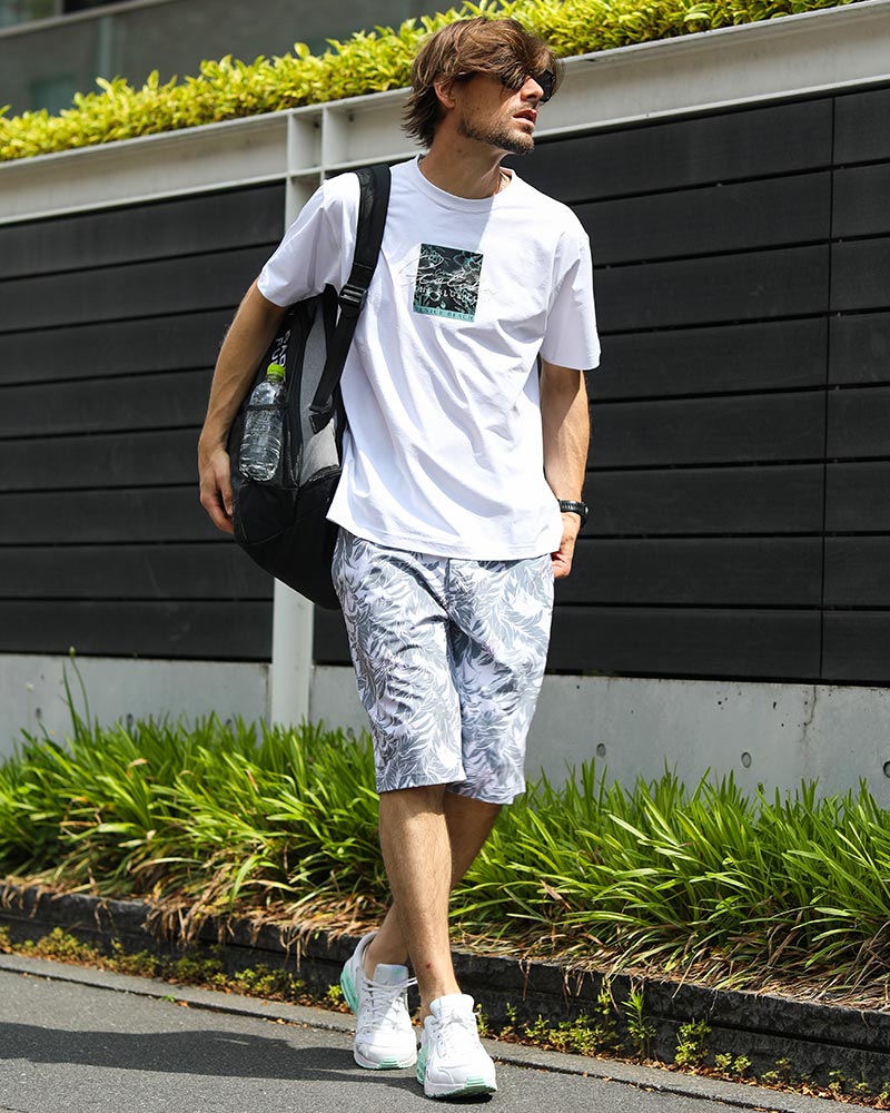 Tシャツにショーツ、そんなラフなスタイルにもすっと馴染むリュック使い。