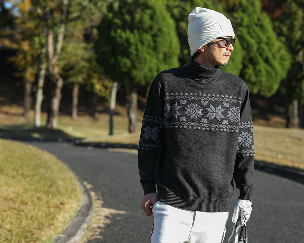 冬のトレンドアイテム大本命のノルディックハイネックニット。