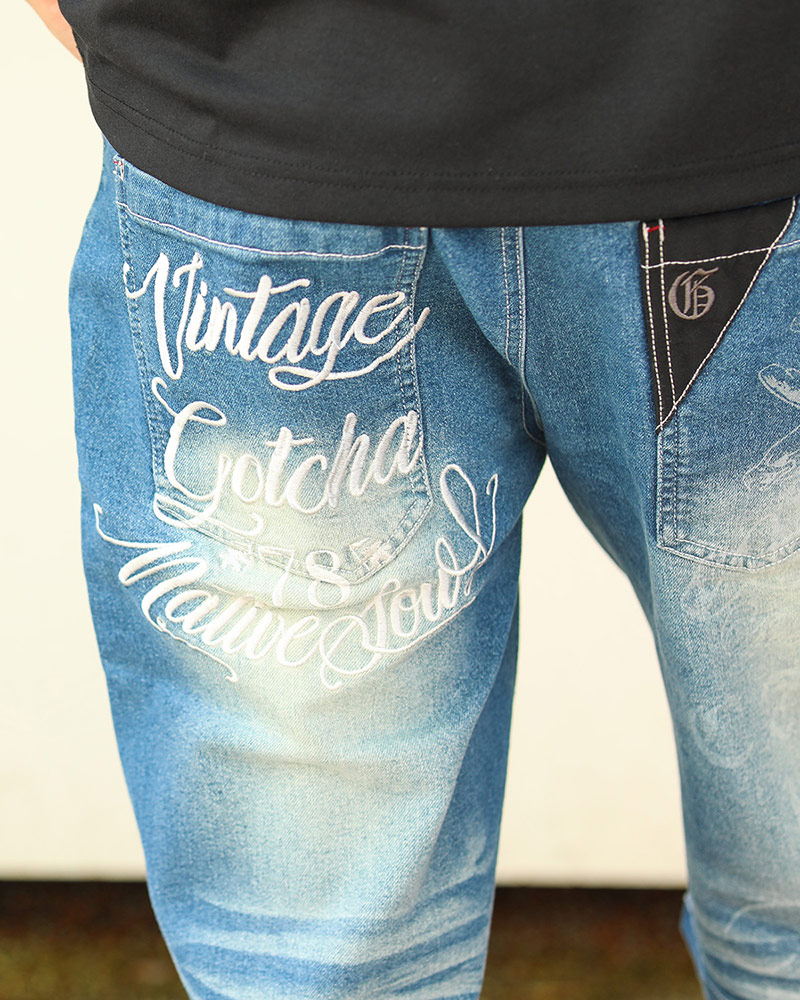 総柄×ブリーチカラーで、夏らしい爽やかさと個性を演出。ストレッチの効いたデニム素材で動きやすさも◎。暑い日のお出かけやアクティブシーンにぴったりの1本です。