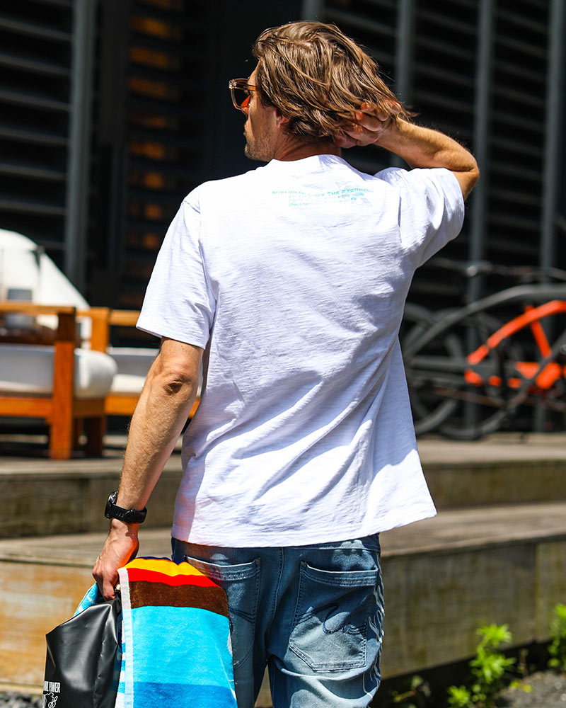 夏の王道白T×デニム。ベーシックなデザインだからこそ問われるアイテム選びと着こなし。Teeは潮風感じるスラブ生地をチョイス。デニムは今期要注目の表情豊かなサマーデニムを無造作にロールアップして抜け感をプラス。香水は清涼感溢れるインテンスレモンを1~2プッシュ。