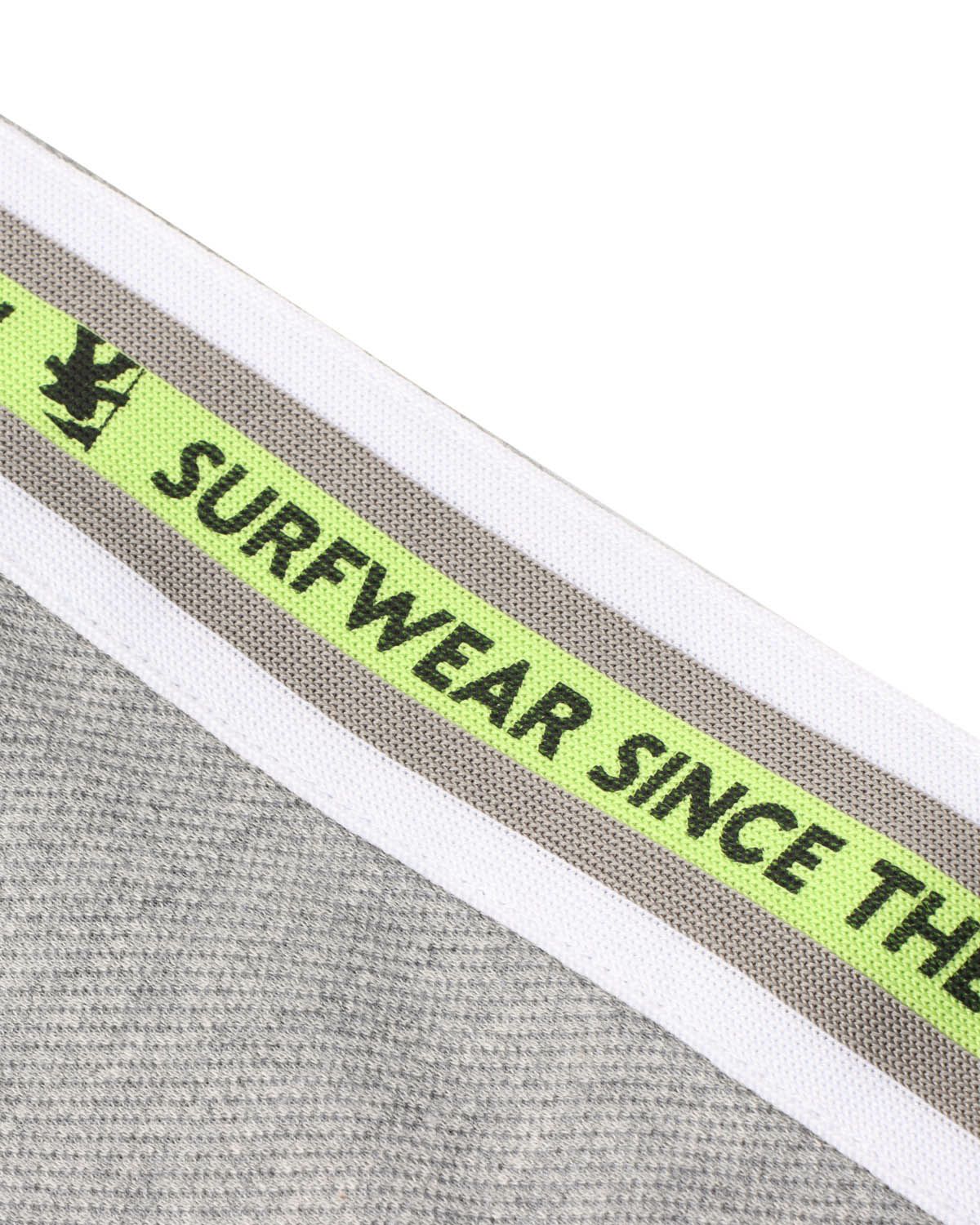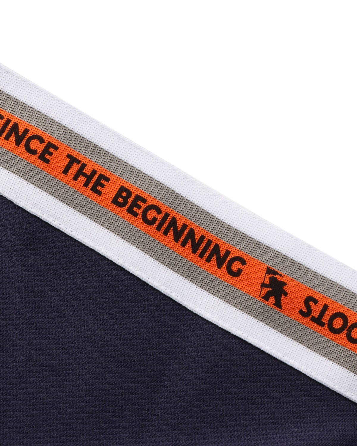 グレーはイエローグリーン、ネイビーはオレンジのネオンカラー使いが特徴的なジャガードロゴ入りテープがアクセントになります。