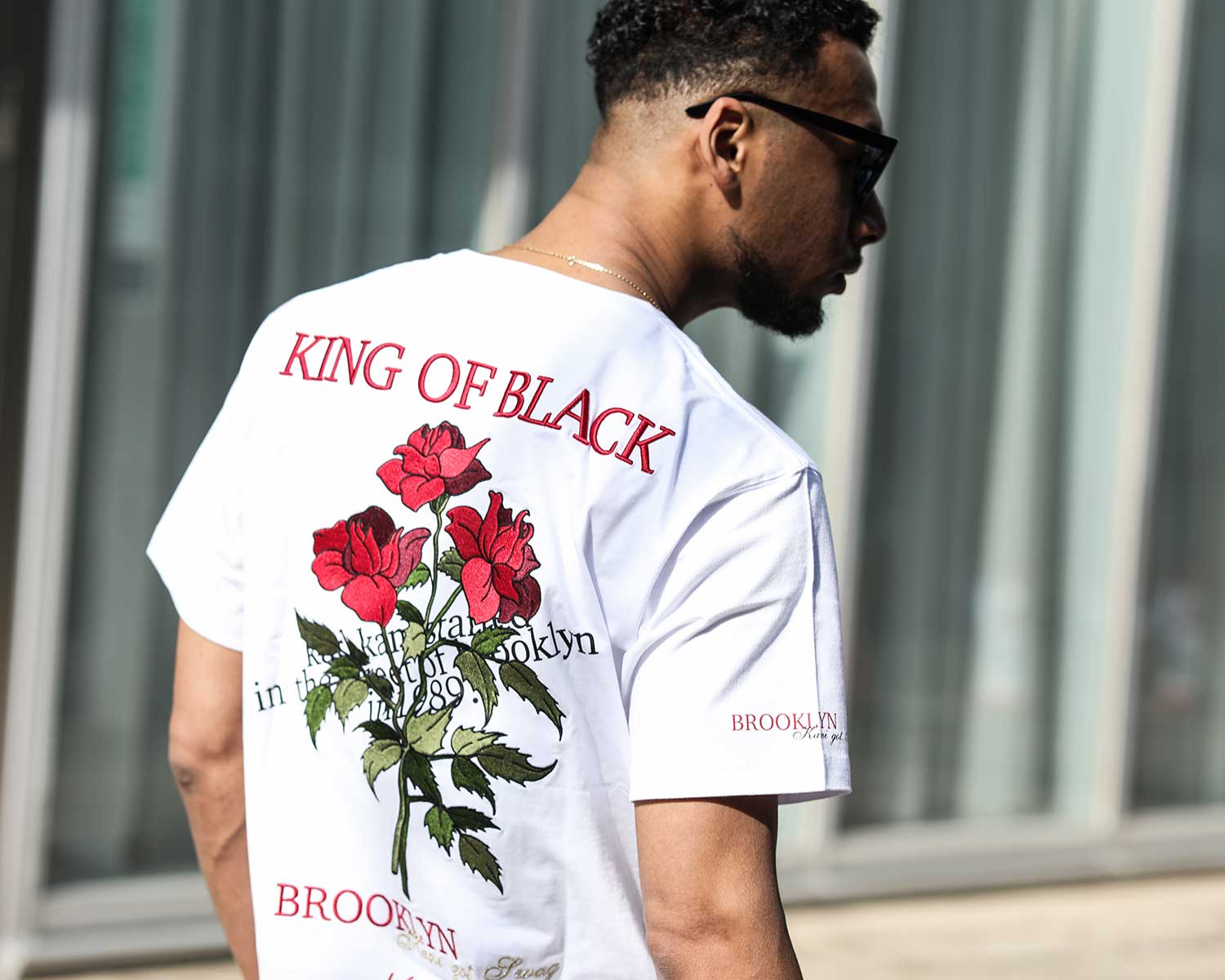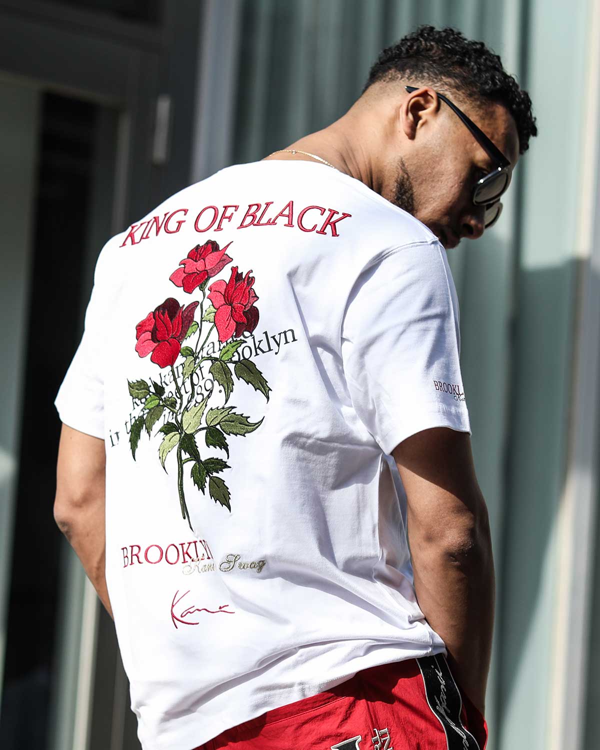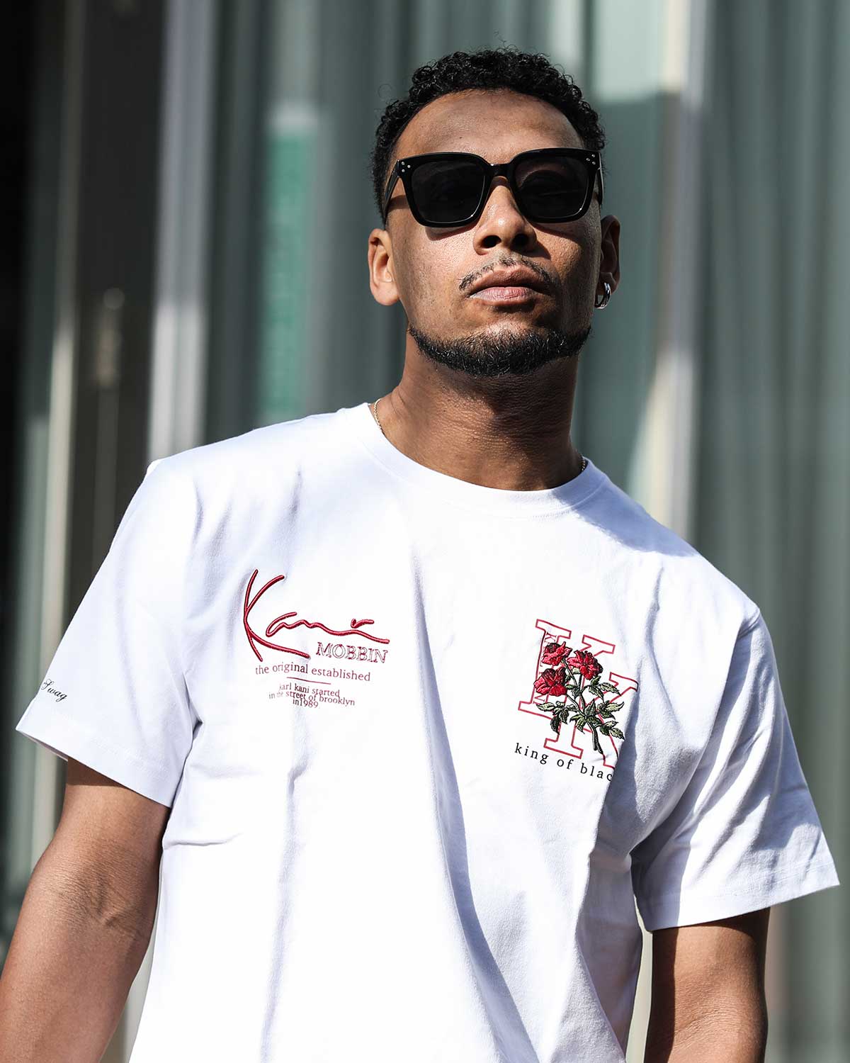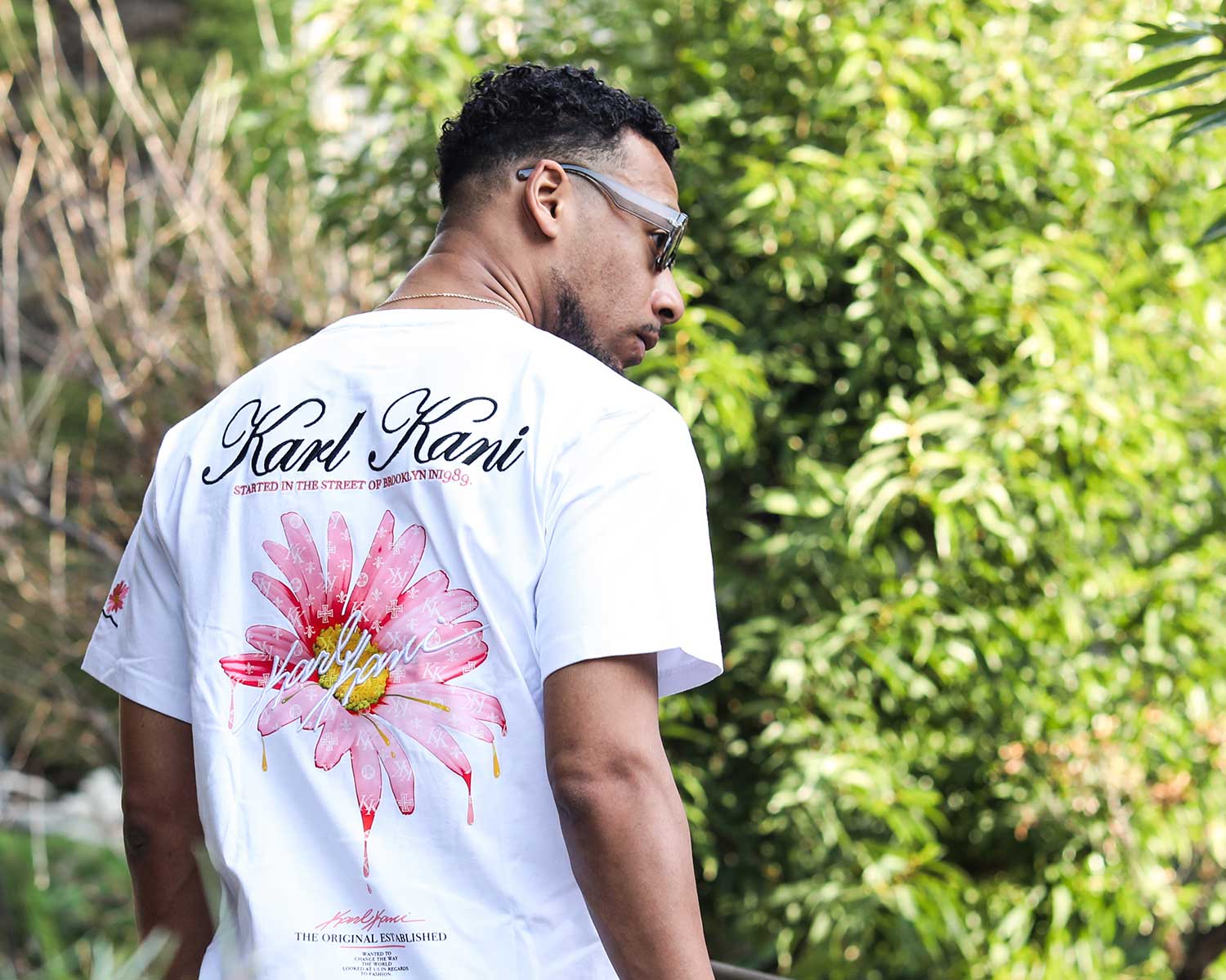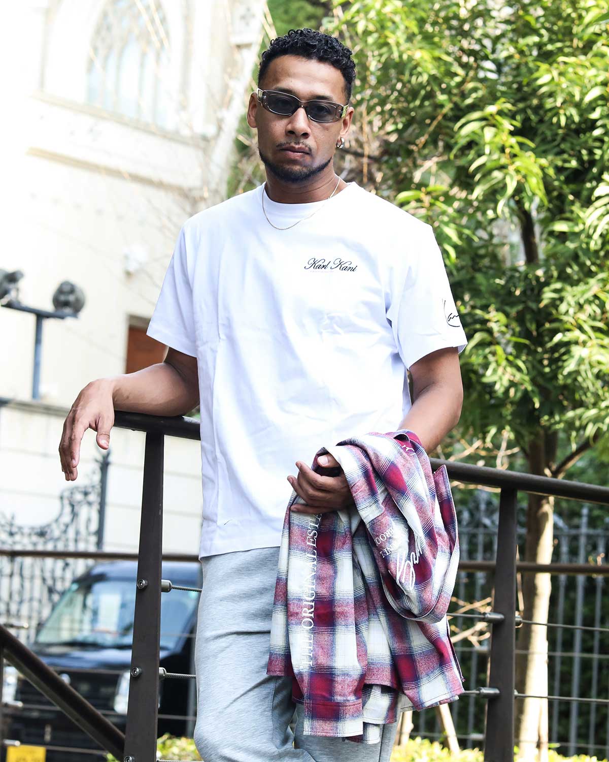 優雅で大人びた魅力を感じさせる1着に。Karl Kani創始者のKarl氏が描いたデッサン画を同色で落とし込み、同じデザインでも違った雰囲気を味わえる2カラー。