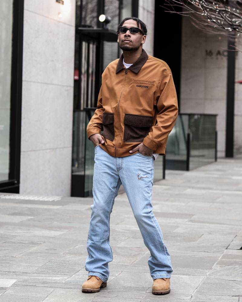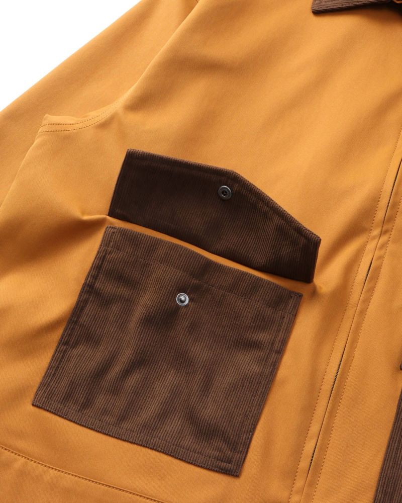 1.タフな生地と温もりのあるコーデュロイの、異素材の組み合わせで個性を放つ1着に。