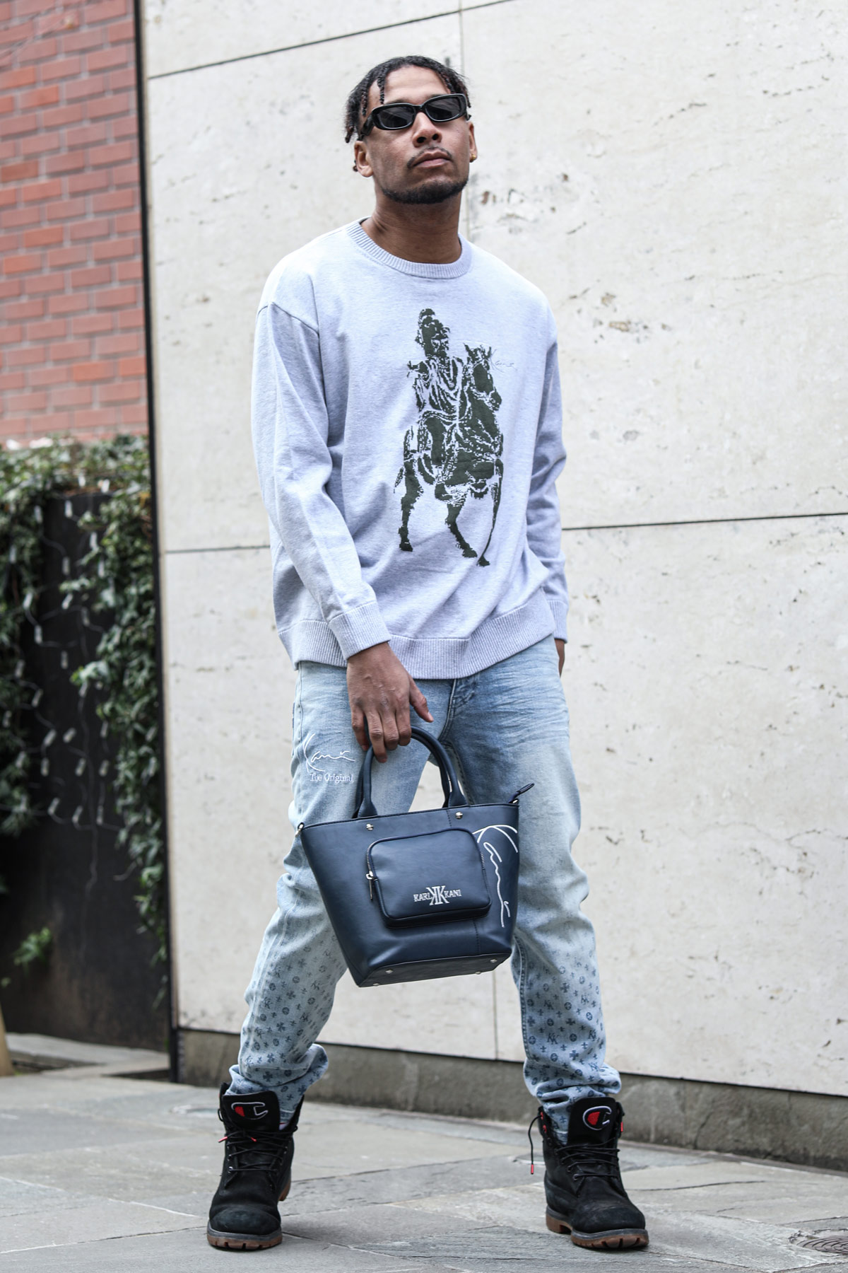 ストレッチ グラデ モノグラム デニムパンツ ¥16,490(tax in)