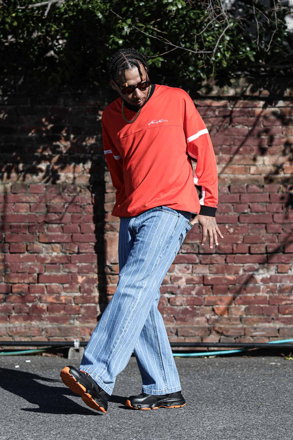 リラックスフィット ストレート ストライプ デニムパンツ ¥15,990(tax in)