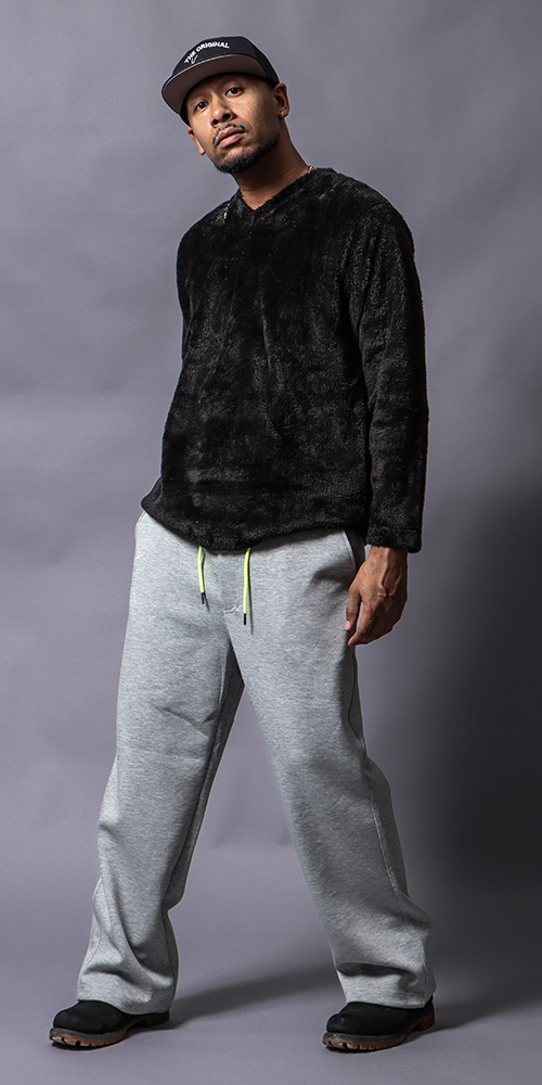 程よい毛足のファーで暖かく、男女ともに着こなしやすいVネックロンT。シンプルな刺繍でインナー使いも◎、裏地はスムース素材で快適な着心地です。