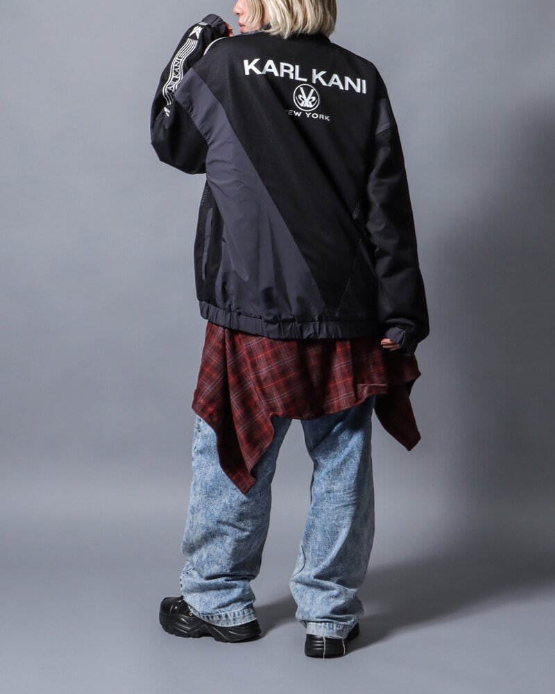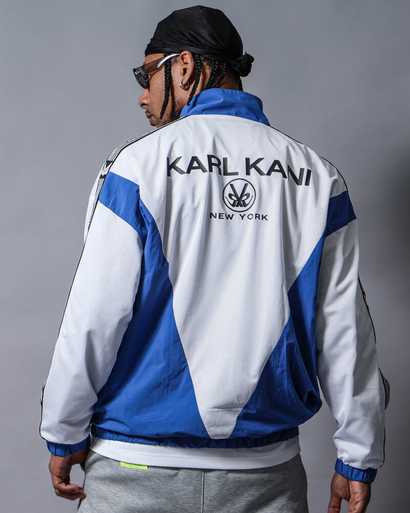 ホワイト×ブルーの鮮やかな配色が目を引く、爽やかなカラーリング。コーディネートの主役として存在感を発揮するこのアイテムは、アクティブなスタイルを楽しみたいときに特におすすめです。