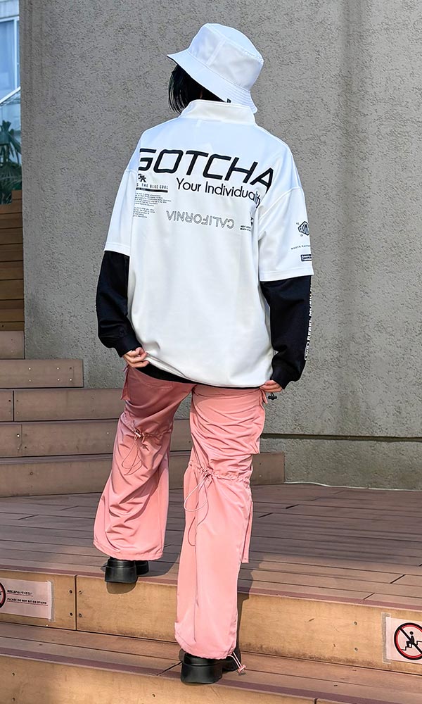 最近人気のダンススタイルに挑戦したレイヤードコーデ。レイヤードするアイテムにハーフジップを選ぶことで、ヒップホップとは違うダンサースタイルに挑戦!足元にはブーツ、被り物はバケットハットをチョイスすることでジャズ&ロックなダンススタイルの完成だ!