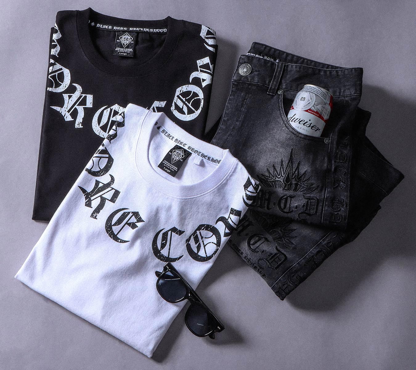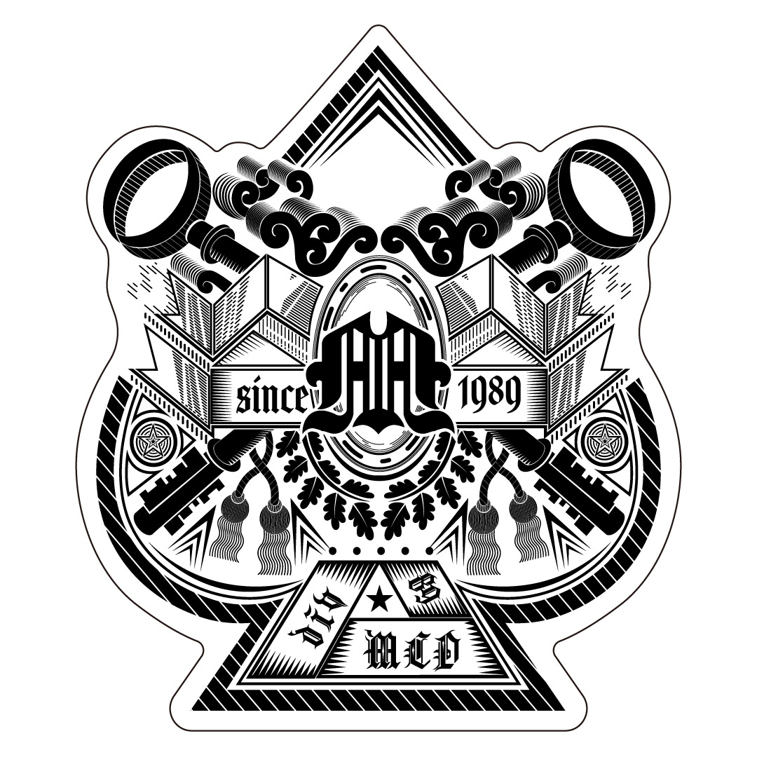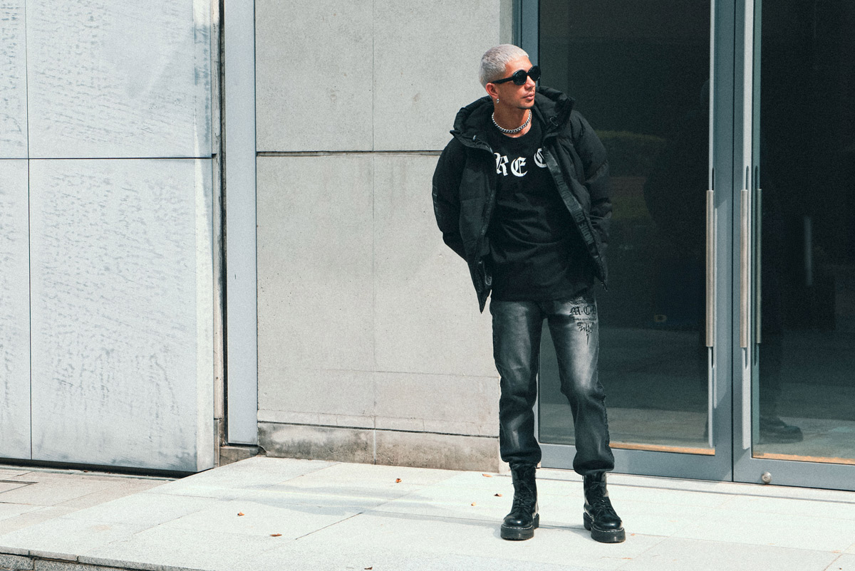 タトゥーから得るインスピレーションを基に描かれた、どこかタフな感じで、ダーク色を