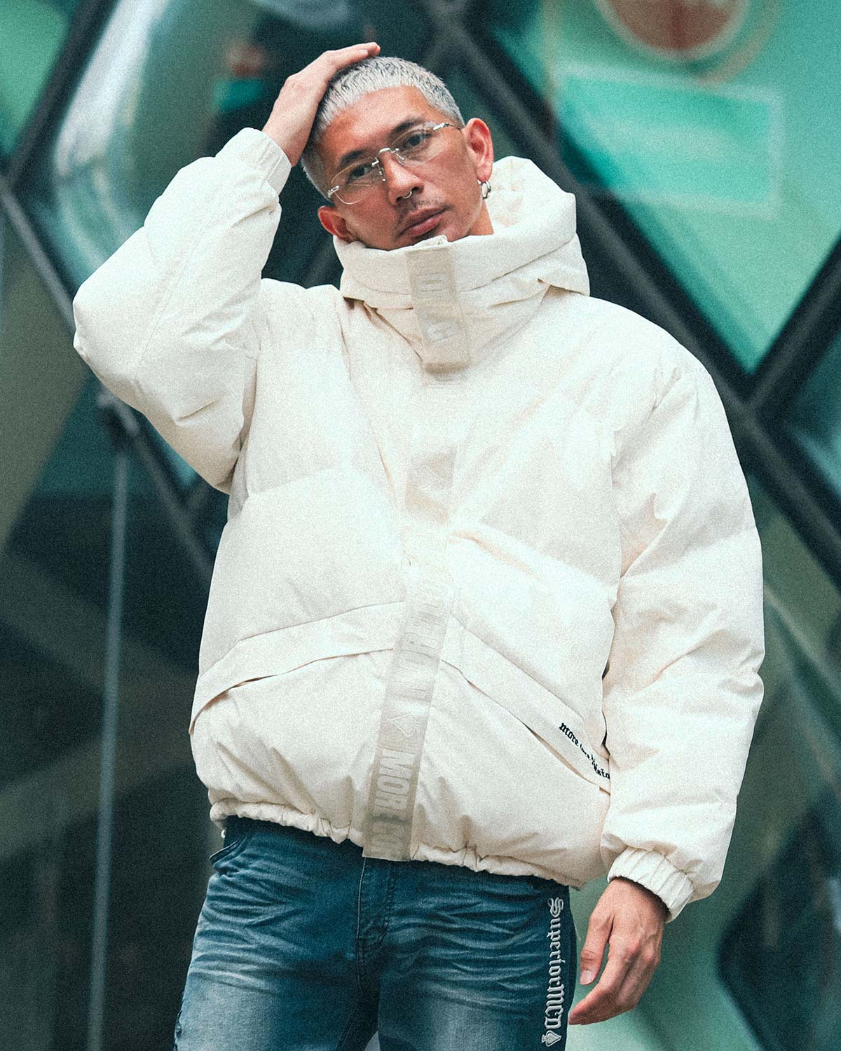 存在感抜群のビッグシルエット。さらに、裾やフード口部分のドローコードを調整することで、