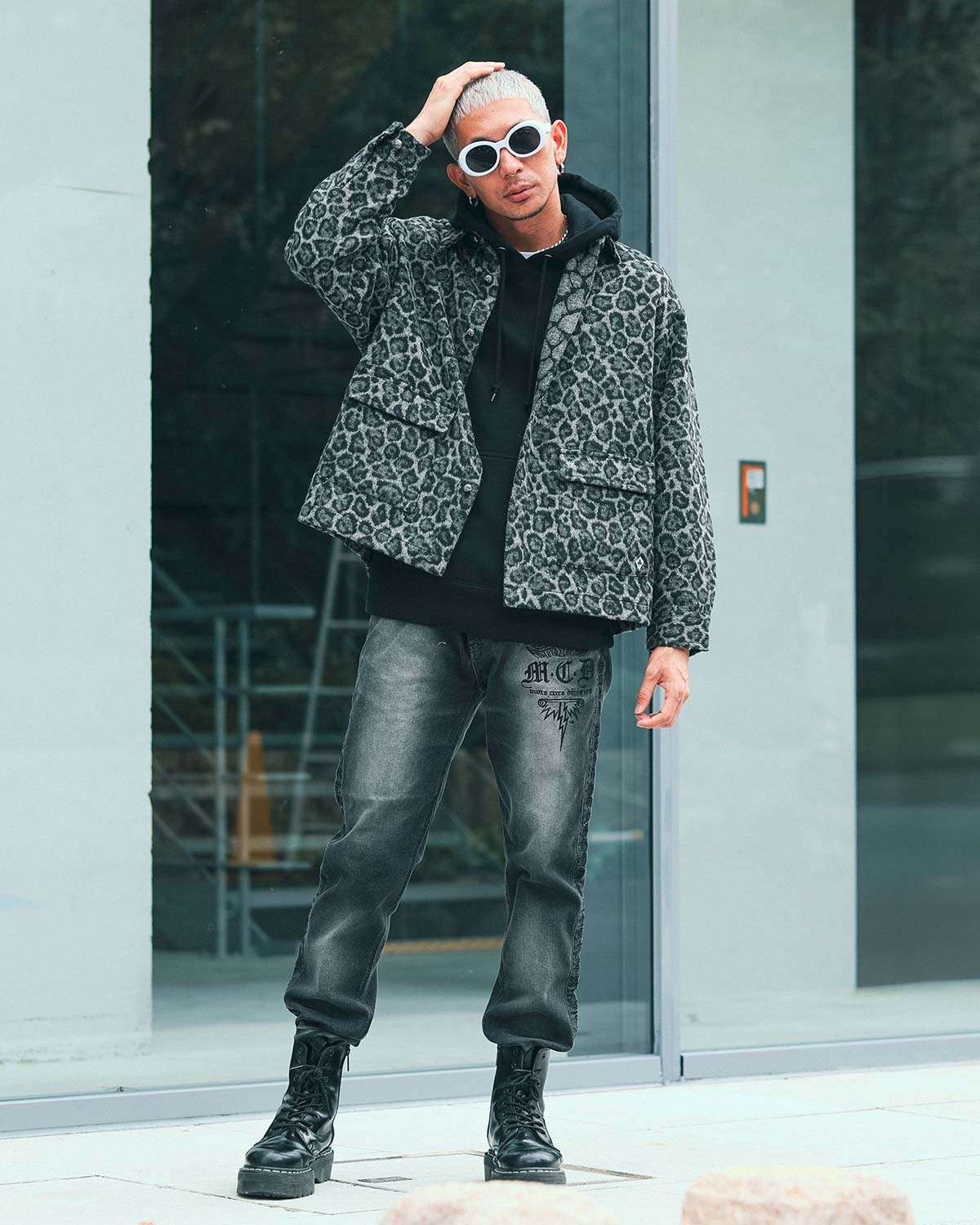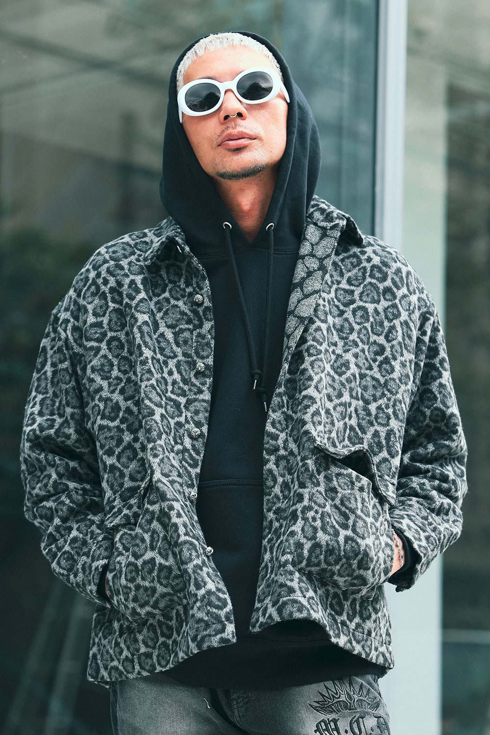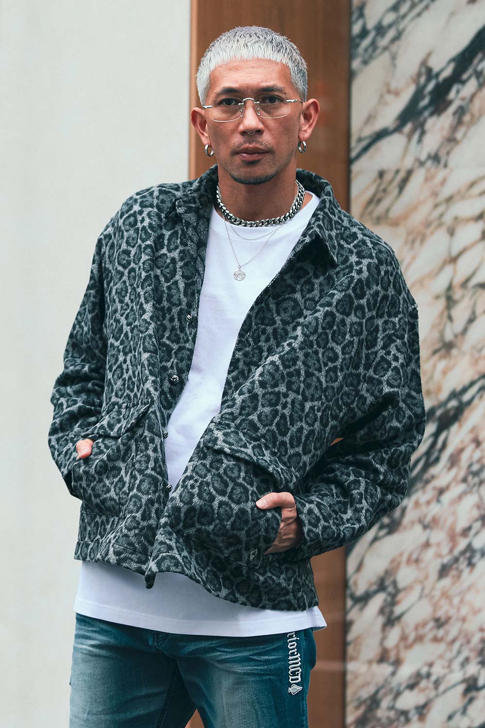 今回復活ということで、当時を思い出しつつ、尖ってるけどカッコよくめちゃくちゃいい雰囲気の出る都会派レオパードシャツジャケットを提案させて頂きました。