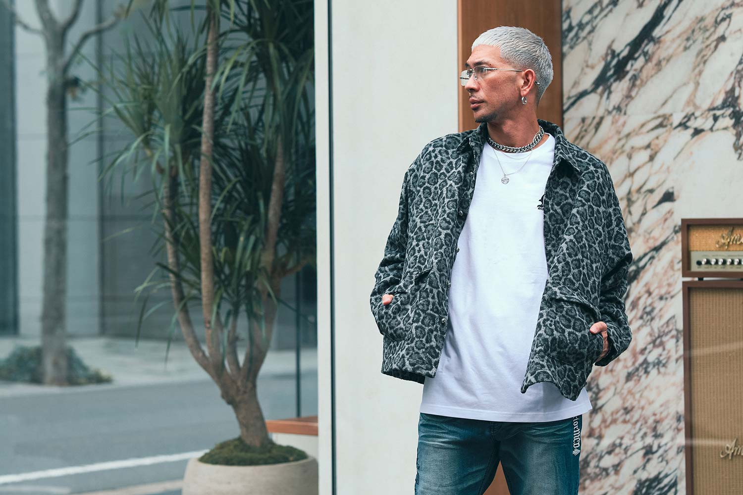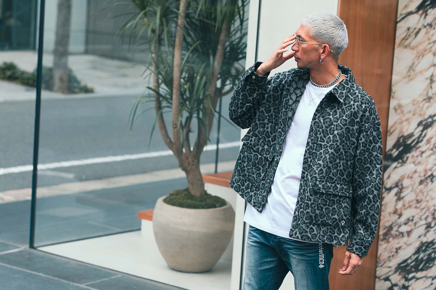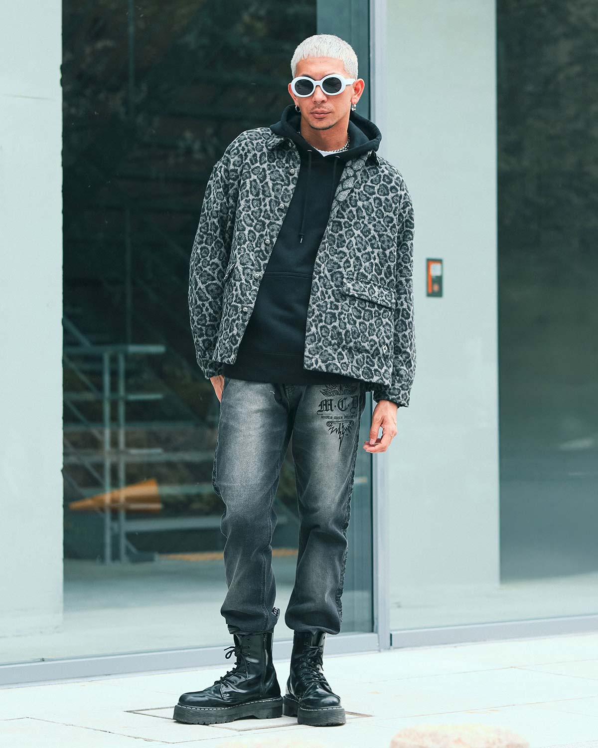 今回復活ということで、当時を思い出しつつ、尖ってるけどカッコよくめちゃくちゃいい雰囲気の出る都会派レオパードシャツジャケットを提案させて頂きました。