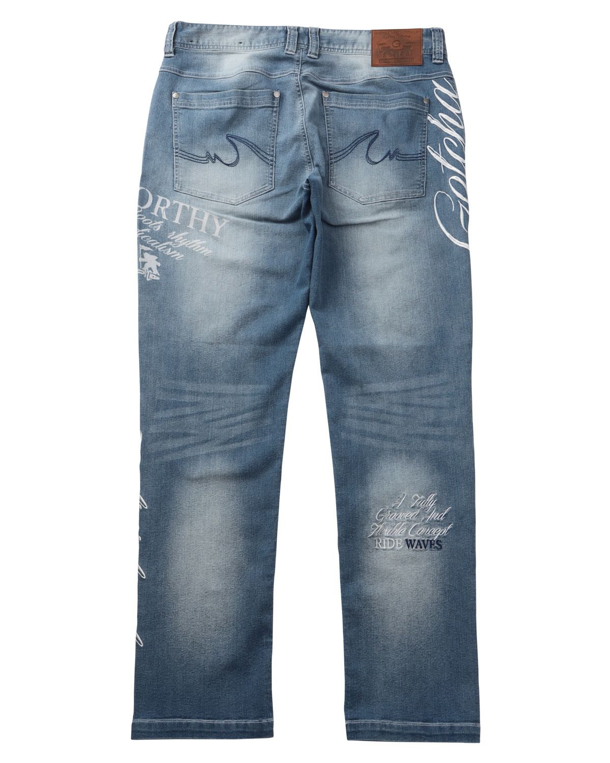 [GOTCHA] ストレッチ 暖パン 跨ぎ刺繍 デニム