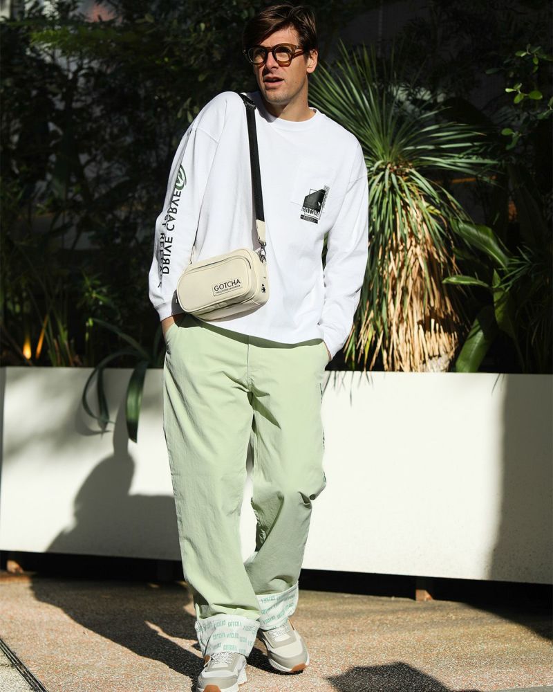 爽やかなカラー使いと、リラックス感のあるワイドなシルエットで、見た目も履き心地も軽やかな印象に♪