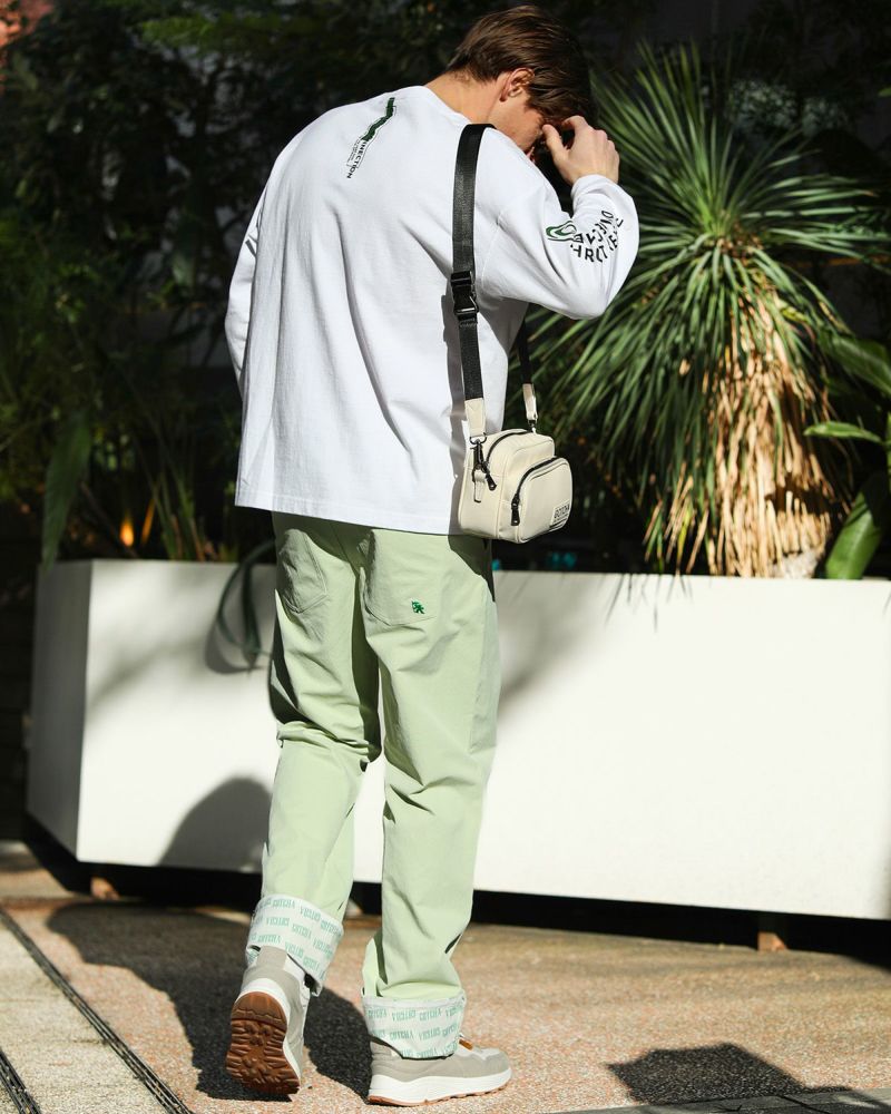 春のムードにぴったり!ナチュラルに映えるミントグリーンのツイルパンツ🍃