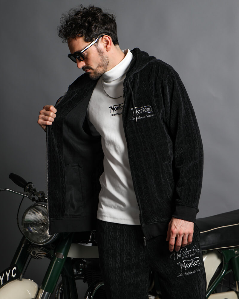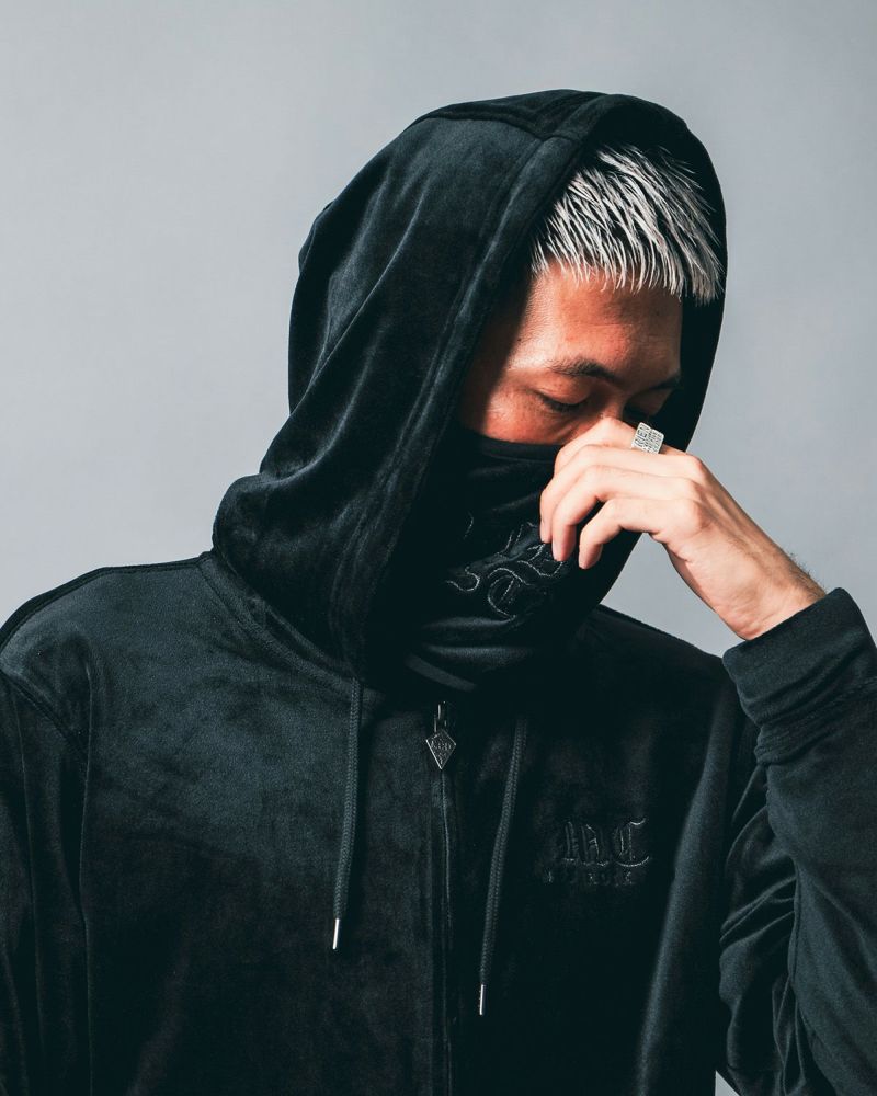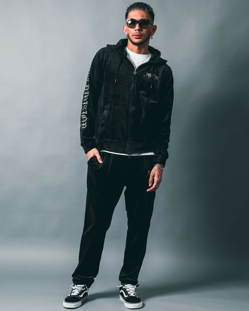 ベロア メタリック刺繍 フルジップ パーカー ¥14,990(tax in)